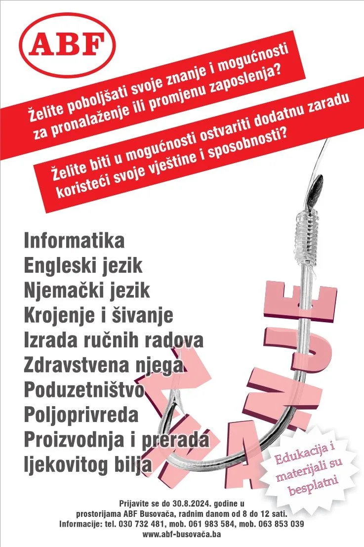 ABF Centar u Busovači pokrenuo je novi ciklus besplatnih edukacija, namijenjenih svima koji žele unaprijediti svoje znanje i vještine te povećati mogućnosti za pronalazak ili promjenu zaposlenja.