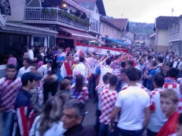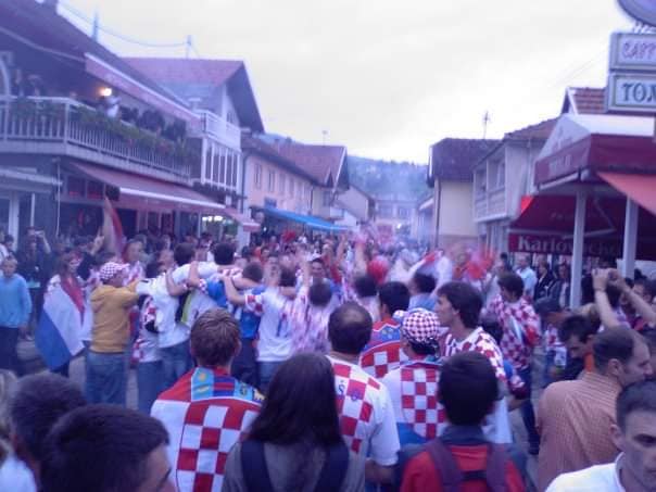 Danas vam donosimo stare fotografije, stare 18 godina, koje prikazuju nezaboravne trenutke iz Busovače. Na tim slikama, zabilježena je navijačka euforija ispred tada popularnih kafića La Bamba, Paradiso, Grand i Orlando, gdje su stotine i stotine navijača bodrile hrvatsku nogometnu reprezentaciju.