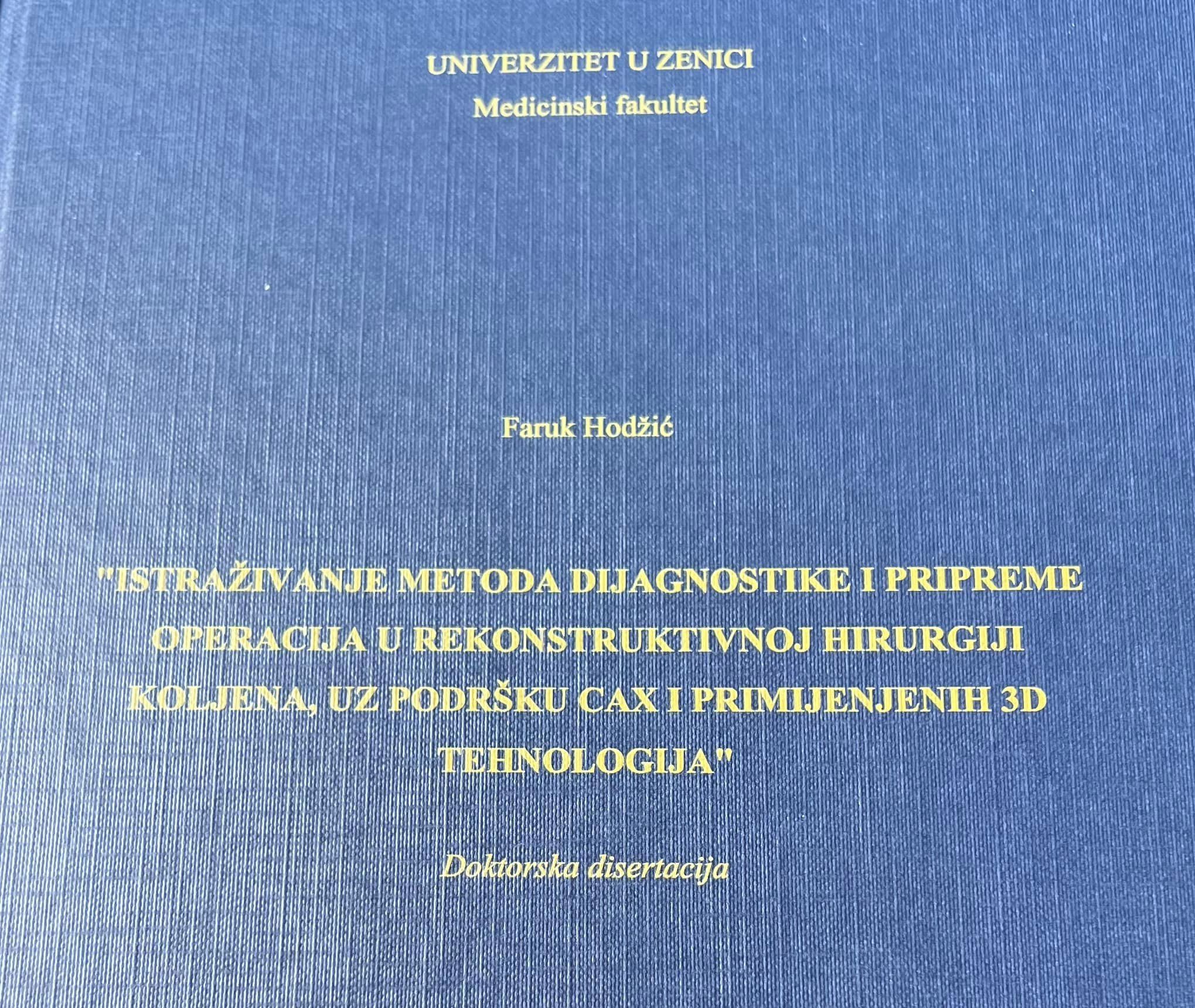Specijalista ortoped mr. bio.sci. dr Faruk Hodžić u ponedjeljak, 14. studenog obranio je doktorsku disertaciju na Medicinskom fakultetu Univerziteta u Zenici.