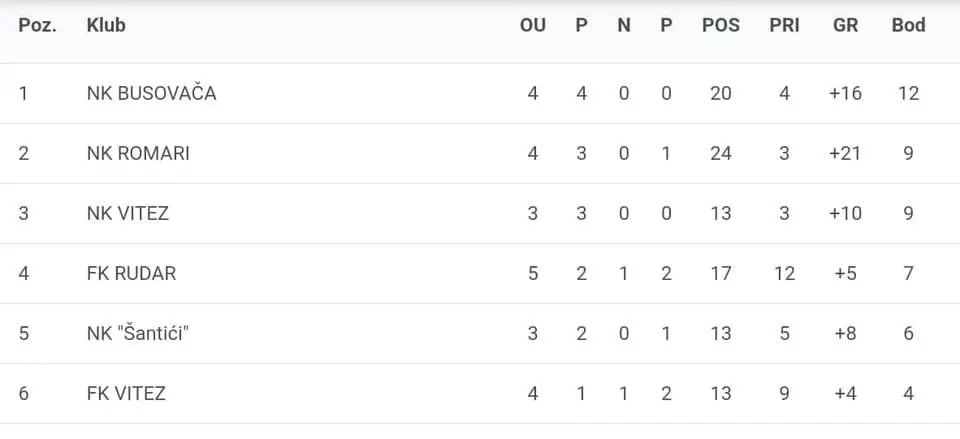 Pioniri NK Busovača su 17. listopada odigrali novu ligašku utakmicu protiv NK Šantići i ostvarili uvjerljivu pobjedu rezultatom 5:1. Ekipa je dominirala terenom i trenutno se nalazi na prvom mjestu u ligi.