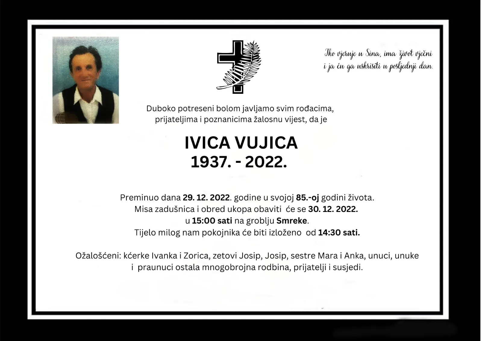 Ivica Vujica, preminuo dana 29.12 u 85-oj godini života.