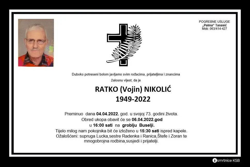 4. travnja u svojoj 73. godini života preminuo je Ratko Nikolić. Obred ukopa obavit će se 6. travnja na groblju Buselji u 16:00 sati.
