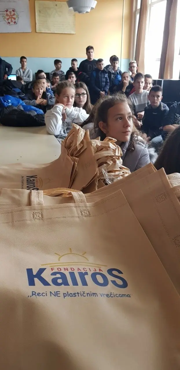 Članovi Kairosa proteklih dana su učenicima ove odgojno-obrazovne ustanove prezentirali štetnost plastike i plastičnih vrećica te podijeli platnene vrećice i brošuru koja govori o štetnosti spomenutih.