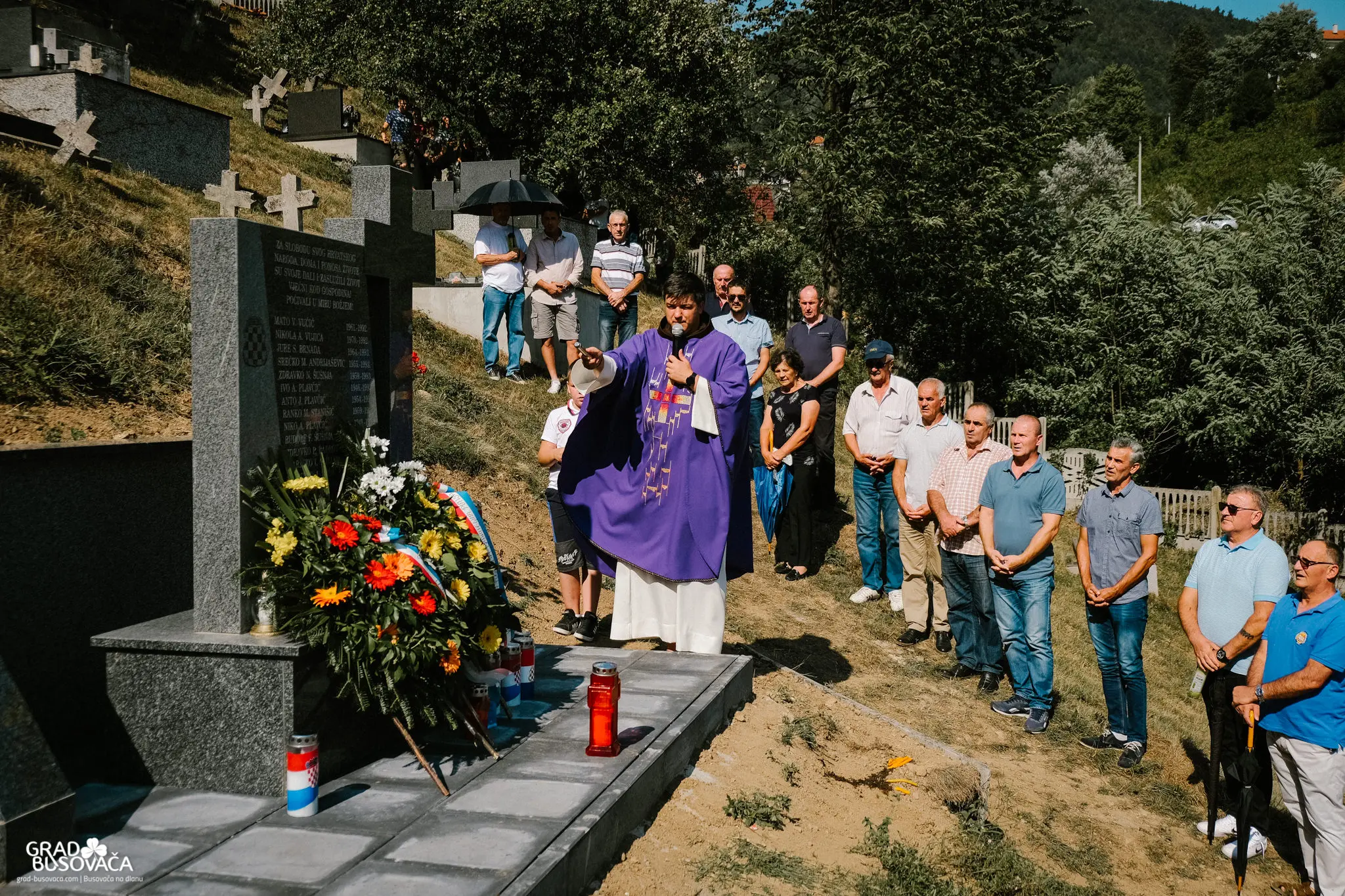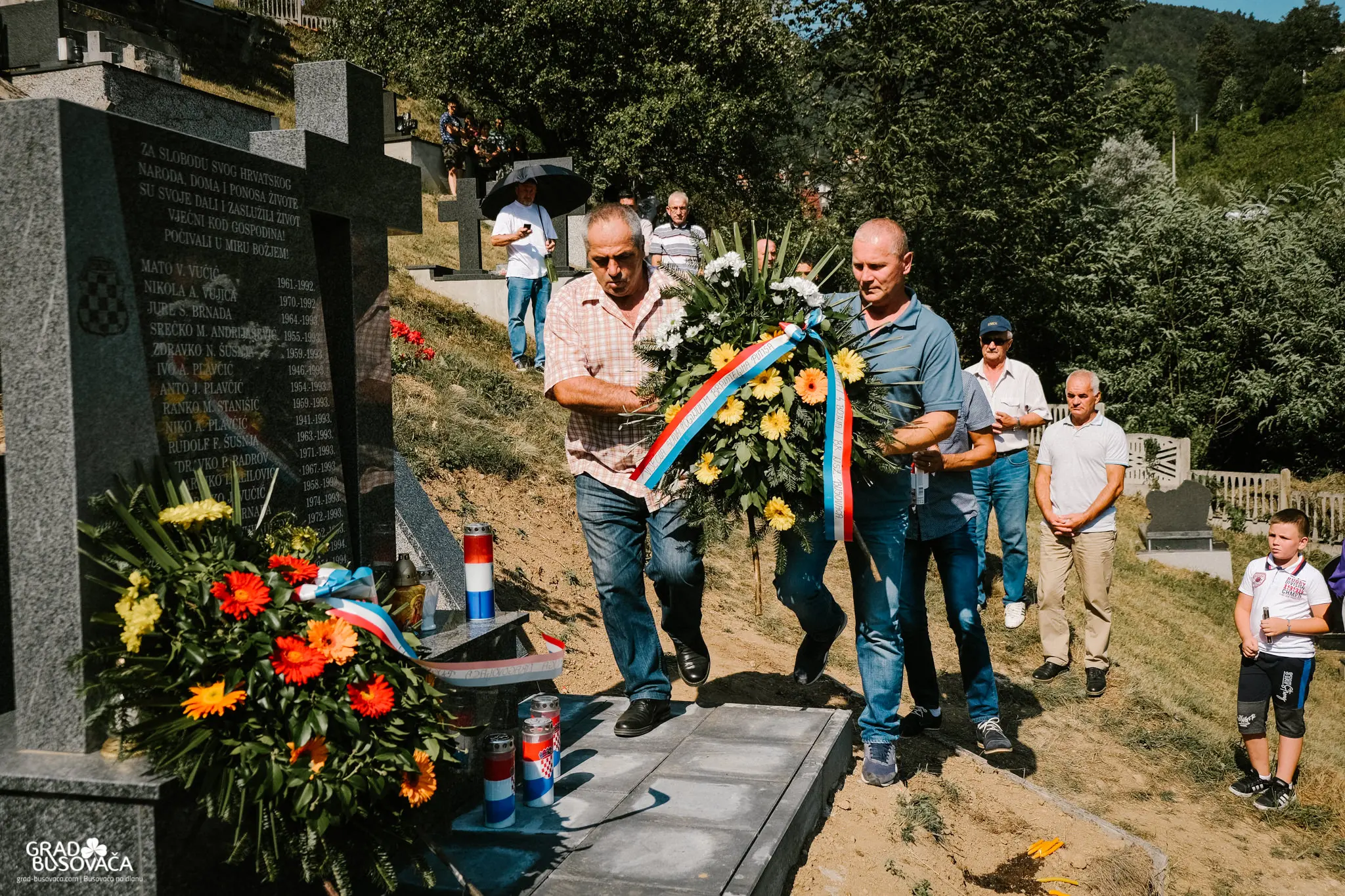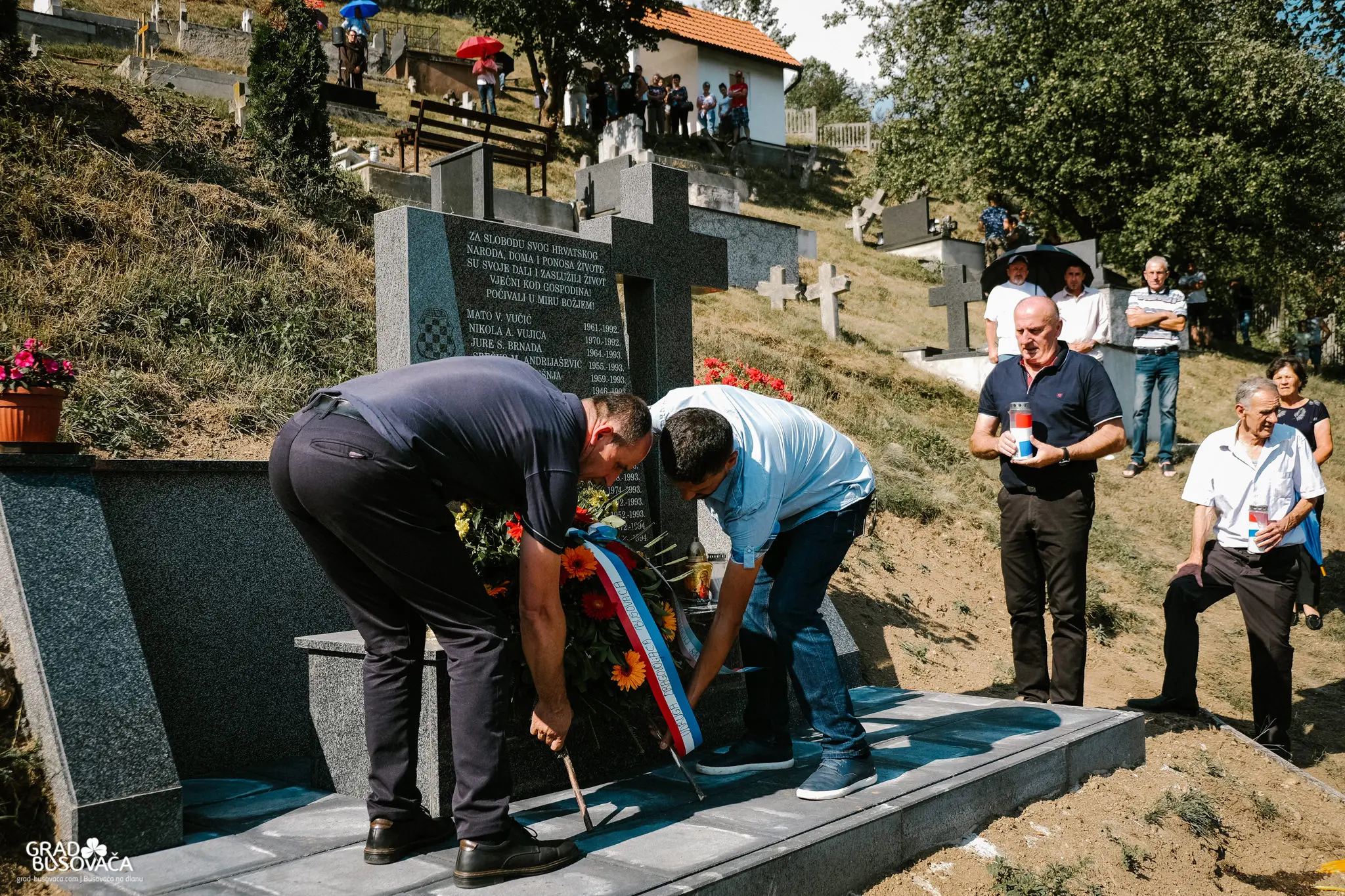 Prije samog blagoslova spomenika, izaslanstvo koordinacije braniteljskih udruga općine Busovača predvođeno Marinkom Ćosićem i Dragom Smoljom položilo je vijence i upalilo svijeće. Uz njih, vijence su položili i svijeće upalili i zapovjednik brigade Jure Čavara, Anto Brnada kojemu su tijekom rata poginuli dvojica braće i otac, predstavnici 3. satnije 4. bojne brigade Nikola Šubić Zrinski – zapovjednik satnije Željko Badrov, voda Dragan Plavčić i Dragan Andrijašević, Udruga policajca hrvatskih branitelja u BiH na čelu s Josipom Marićem, izaslanstvo OO HDZ BiH Busovača – vijećnici u OV Busovača Danijela Trogrlić, Goran Milić, Dario Marušić, Dario Plavčić te Pero Lovrić.