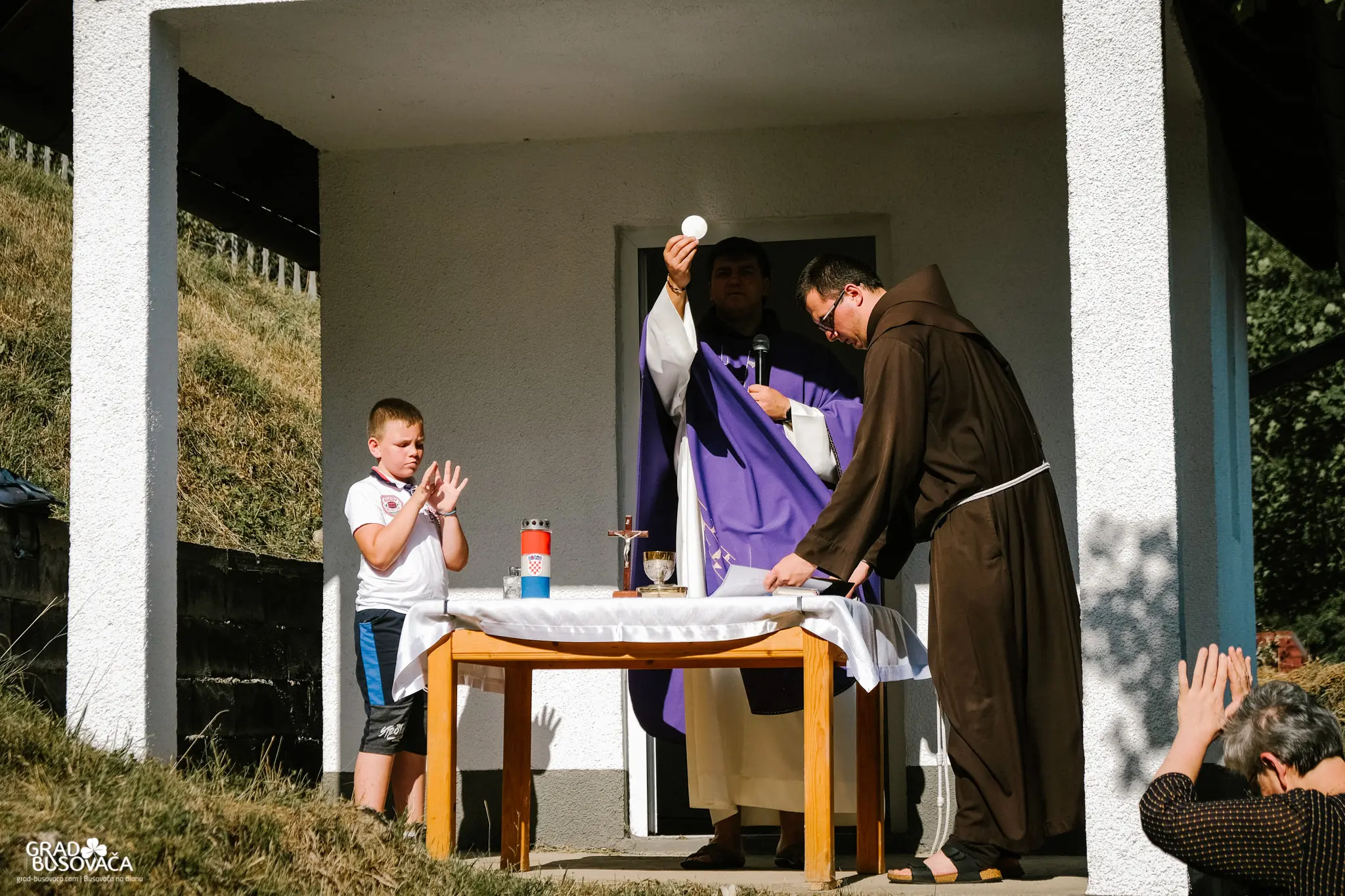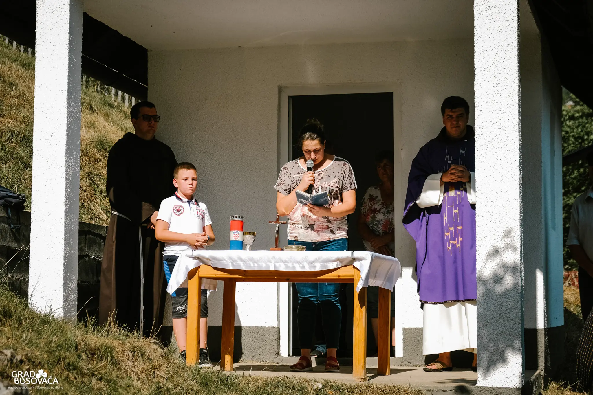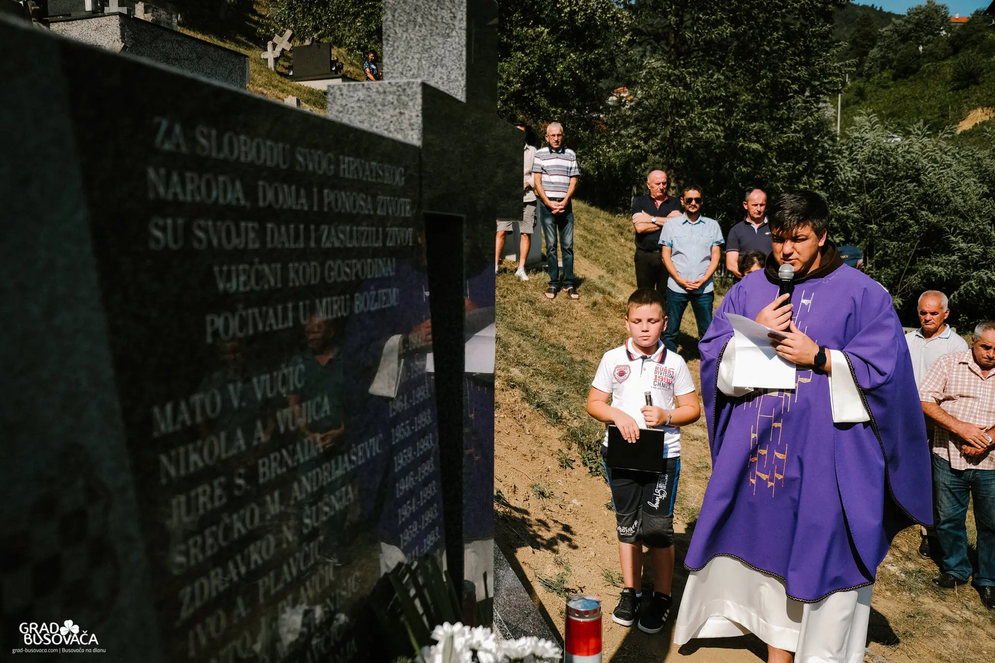 Prije samog blagoslova spomenika, izaslanstvo koordinacije braniteljskih udruga općine Busovača predvođeno Marinkom Ćosićem i Dragom Smoljom položilo je vijence i upalilo svijeće. Uz njih, vijence su položili i svijeće upalili i zapovjednik brigade Jure Čavara, Anto Brnada kojemu su tijekom rata poginuli dvojica braće i otac, predstavnici 3. satnije 4. bojne brigade Nikola Šubić Zrinski – zapovjednik satnije Željko Badrov, voda Dragan Plavčić i Dragan Andrijašević, Udruga policajca hrvatskih branitelja u BiH na čelu s Josipom Marićem, izaslanstvo OO HDZ BiH Busovača – vijećnici u OV Busovača Danijela Trogrlić, Goran Milić, Dario Marušić, Dario Plavčić te Pero Lovrić.