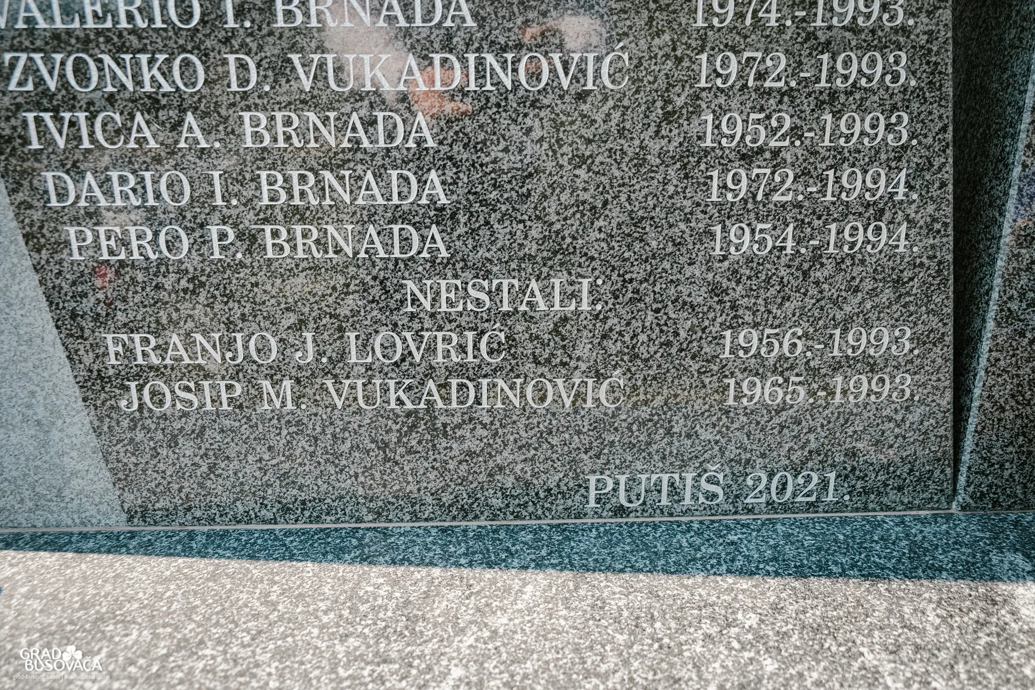 Srebrenim slovima u tvrdi hrvatski kamen na novoizgrađenom spomen obilježju palim braniteljima HVO-a u Putišu upisana su imena 20 mladih bojovnika koji su svoj život dali za našu slobodu u proteklom Domovinskom ratu. Središnja Bosna, Busovača, a posebno obitelji, rodbina i prijatelji poginulih, vječno će pamtiti imena: Mato Vučić, Nikola Vujica, Jure Brnada, Srečko Andrijašević, Zdravko Šušnja, Ivo Plavčić, Anto Plavčić, Ranko Stanišić, Niko Plavčić, Rudolf Šušnja, Zdravko Badrov, Marinko Alilović, Marinko Vučić, Zvonko Vukadinović, Valerio Brnada, Ivica Brnada, Dario Brnada, Pero Brnada, Franjo Franko Lovrić i Josip Vukadinović.
