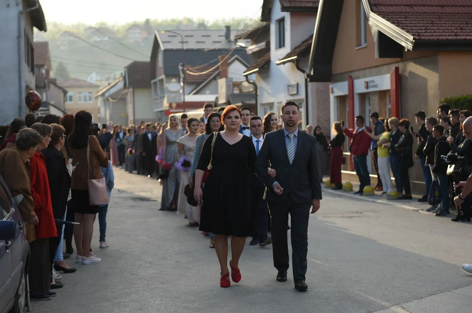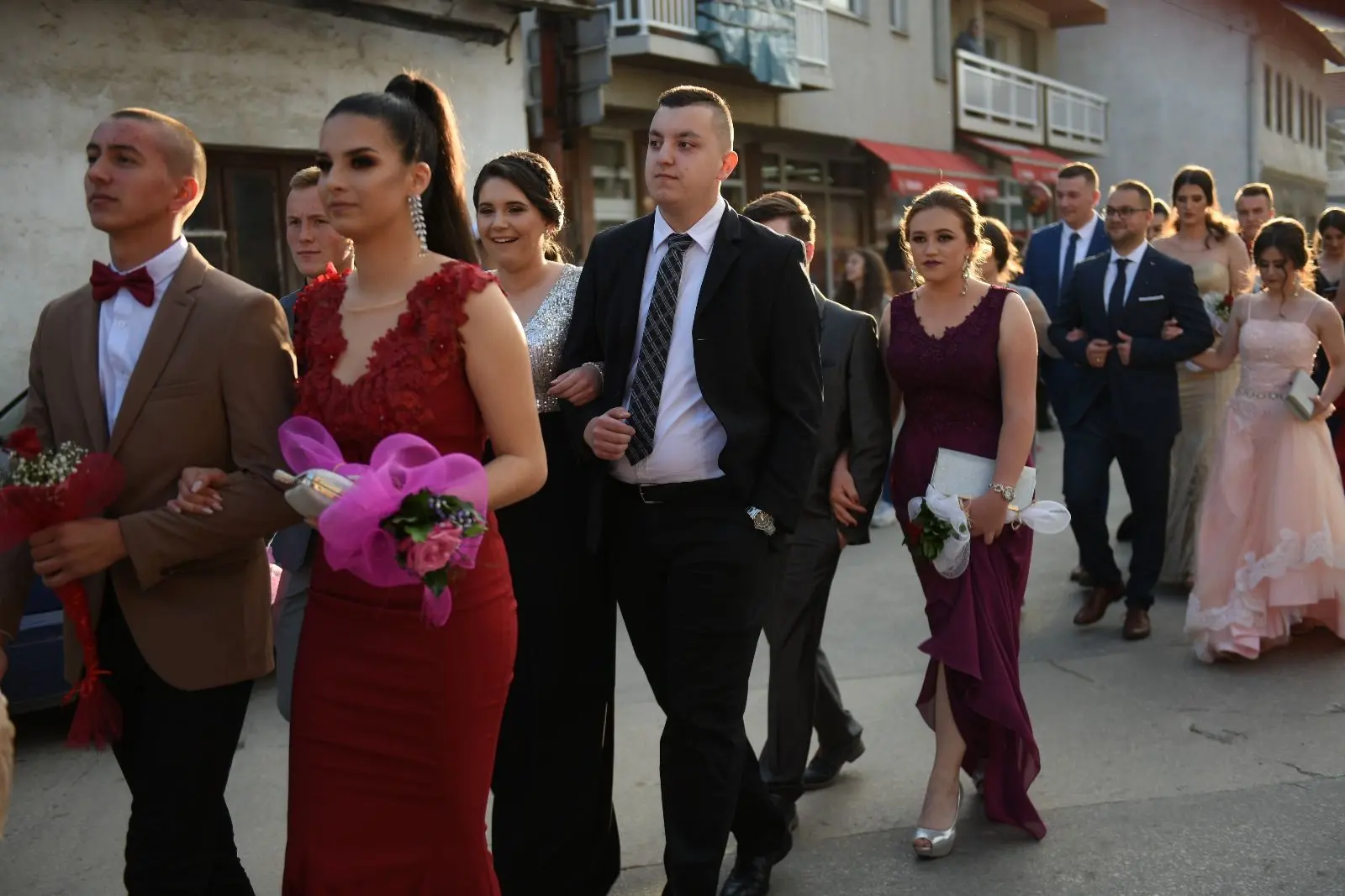 Promenadi je prethodilo neizostavno okupljanje ispred Srednje škole “Busovača”, gdje je maturante (gimnazijalci, tehničari cestovnog prometa, komercijalisti, tehničari za vozila i vozna sredstva i frizeri), uz prisustvo mnogobrojnih posjetitelja, pozdravnim govorima ispratila obrazovna zajednica naše općine.
