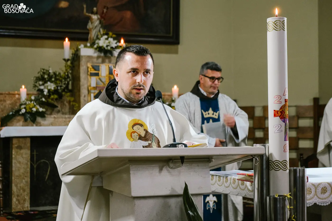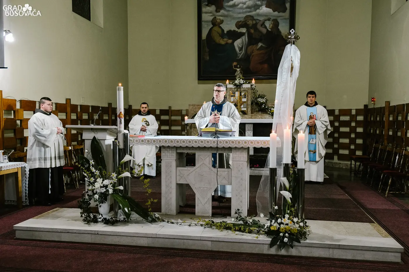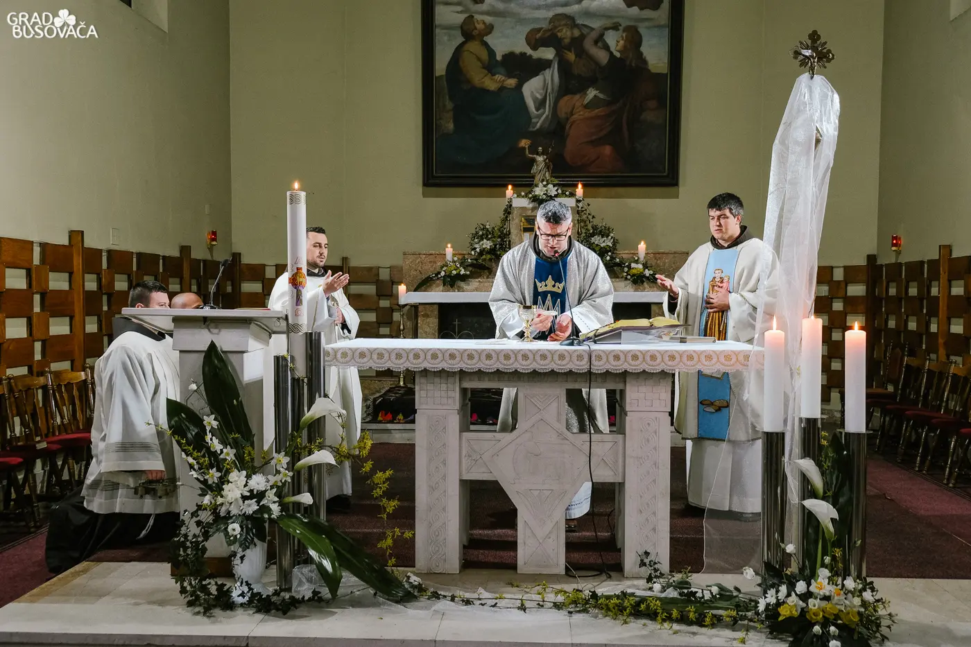 Obrede Velike subote u svetoj uskrsnoj noći, 11. travnja 2020. godine u župnoj crkvi sv. Ante Padovanskog u Busovači predvodio je busovački župnik fra Zoran Jaković u zajedništvu sa župnim vikarima fra Božidarom Štrkaljom i fra Ivicom Matišićem te bogoslovima – fra Mijom Ljubosom i fra Zvonimirom Batistom.