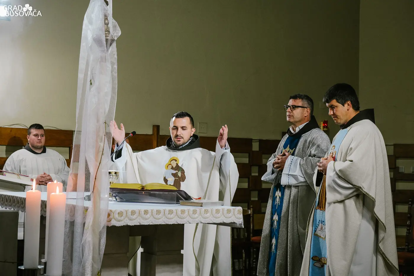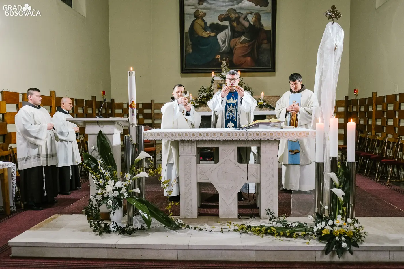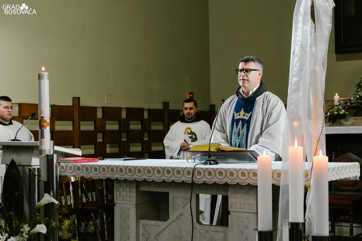 Obrede Velike subote u svetoj uskrsnoj noći, 11. travnja 2020. godine u župnoj crkvi sv. Ante Padovanskog u Busovači predvodio je busovački župnik fra Zoran Jaković u zajedništvu sa župnim vikarima fra Božidarom Štrkaljom i fra Ivicom Matišićem te bogoslovima – fra Mijom Ljubosom i fra Zvonimirom Batistom.