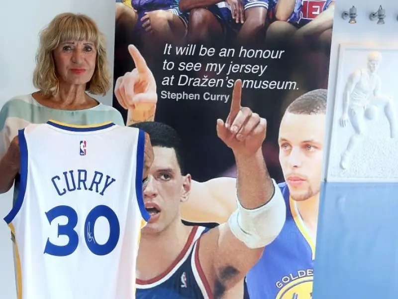 Biserka Petrović s dresom Stephena Curryja koji je osobno poslao Muzeju Dražena Petrovića
