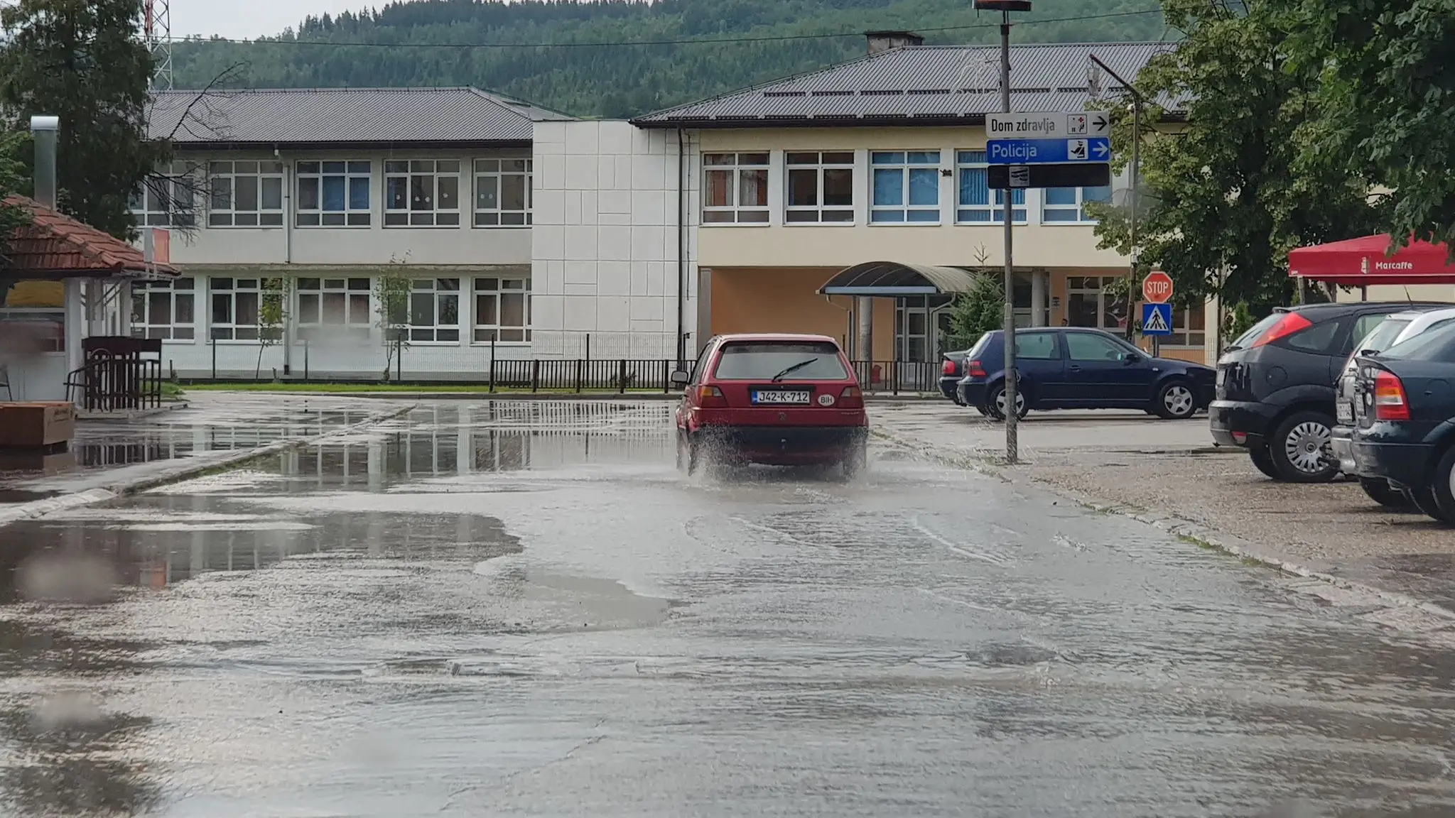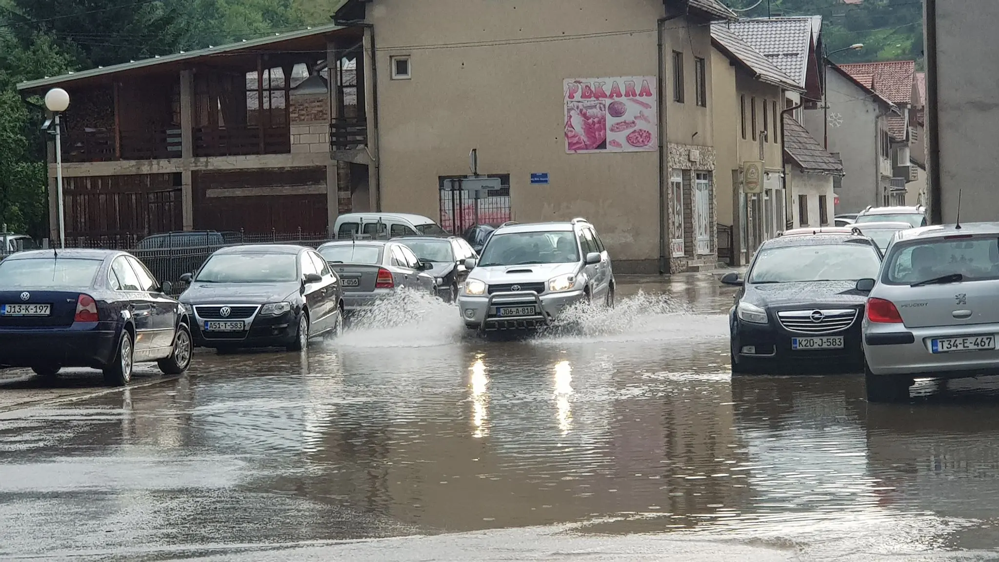 Jako nevrijeme danas oko 18 sati pogodilo je Busovaču. Neki dijelovi grada 15-ak minuta bili su u potpunosti pod vodom, a poplavljene su ceste i podrumi.