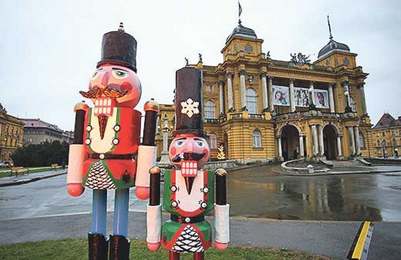 Staklena zgrada Turističkog informativnog centra na glavnom zagrebačkom trgu posve je oblijepljena adventskom naljepnicom s koje strši osam orašara, a preko puta, u izlogu Školske knjige, kao blagdanska hit preporuka stoji crvena slikovnica “Orašar”.