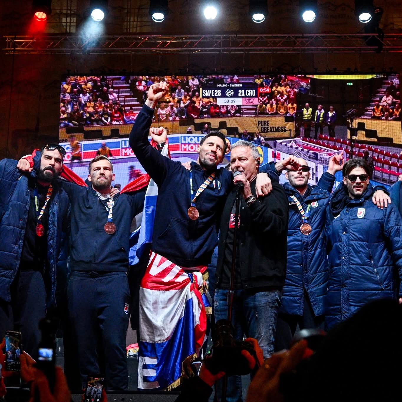 Sa suzama u očima publici se obratio kapetan ekipe Ivan Martinović, a ogrnut zastavnom Herceg- Bosne uz natpis Jajce, rekao je kako mu je teško govoriti jer emocije prevladavaju. Istaknuo je čast jer predvodi, kako je rekao najbolje ekipu na svijetu.