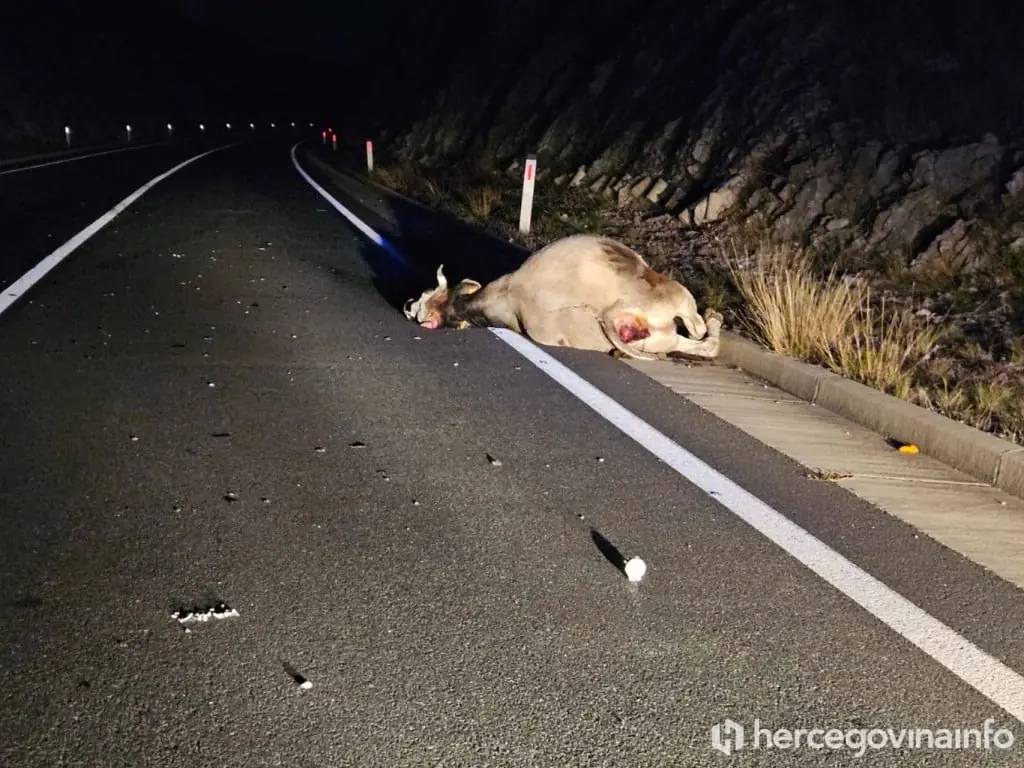 U petak oko 22:35 sati, na novoj obilaznici između Miljkovića i Pologa, došlo je do prometne nesreće u kojoj je automobil Golf udario u kravu koja je prelazila preko ceste.