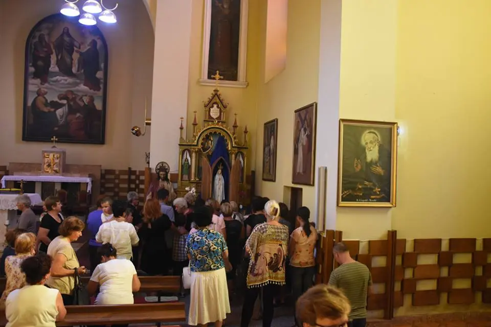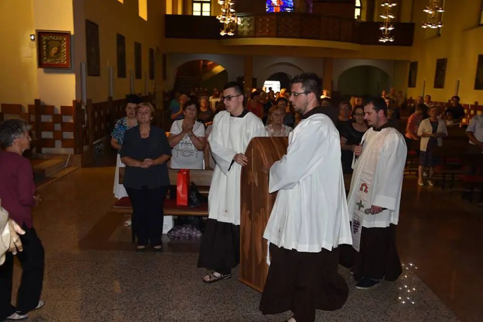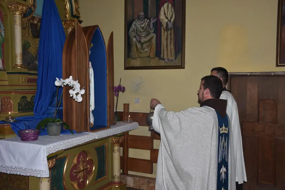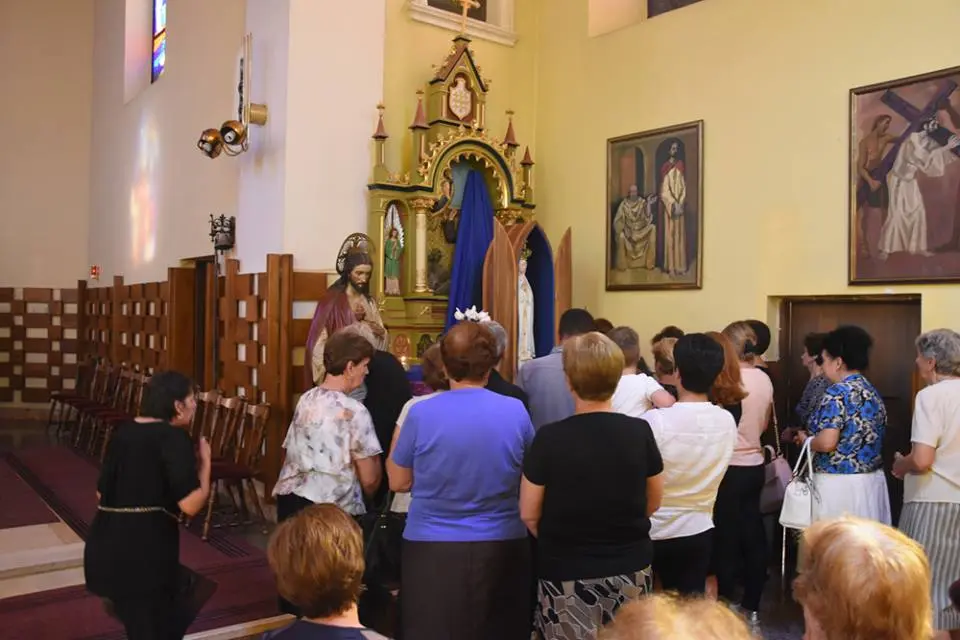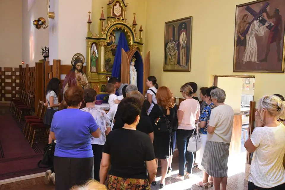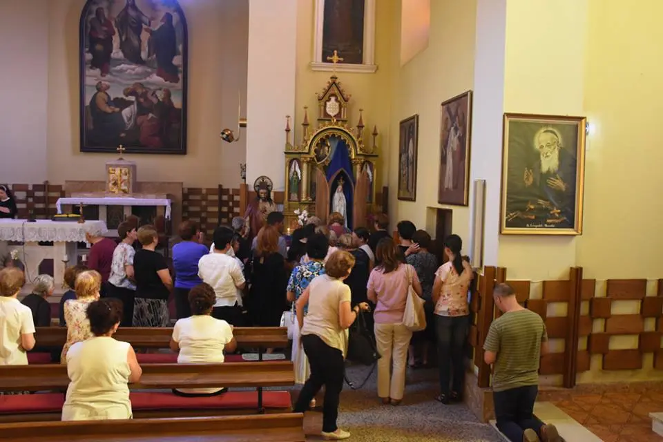 Obred molitve započeo je svečanim unošenjem kipa u župnu crkvu u 17:15 nakon čega je slijedila molitva krunice i litanija BDM. U 18:00, u prepunoj crkvi slavljeno je svečano euharistijsko slavlje u kojem je župna zajednica molila za mir.