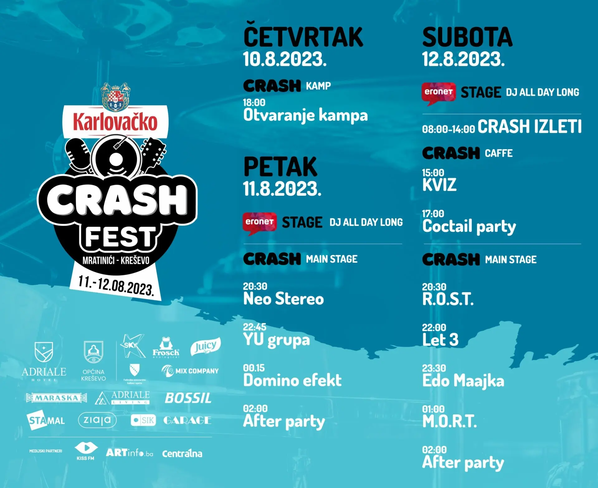 Kreševo će postati centar zabave, glazbe i pozitivnih emocija, a Crash Fest neizostavno je mjesto za sve ljubitelje dobre glazbe i uživanje u predivnoj prirodi.