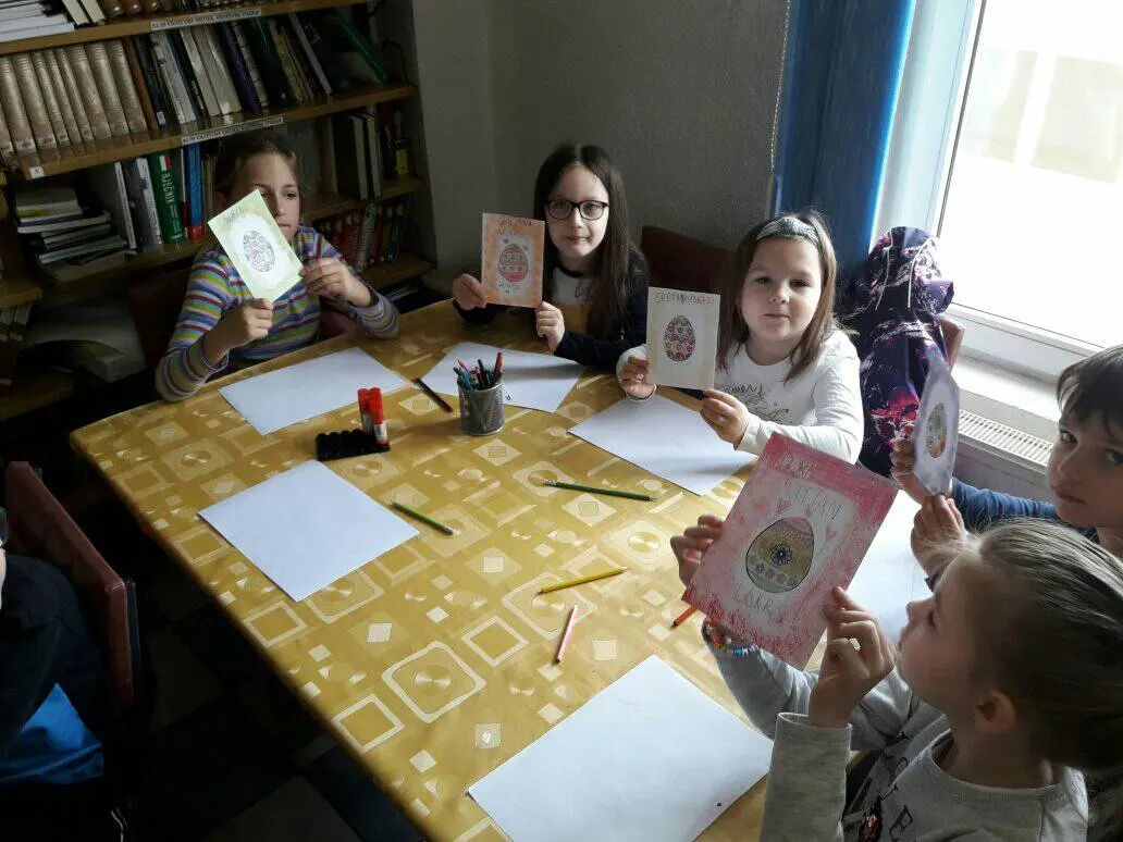 Učenici prvih razreda Osnovne škole Busovača u pratnji učiteljica Dijane Krišto i Marije Ćosić posjetili su Gradsku knjižnicu “Busovača” i izrađivali čestitke za Uskrs.