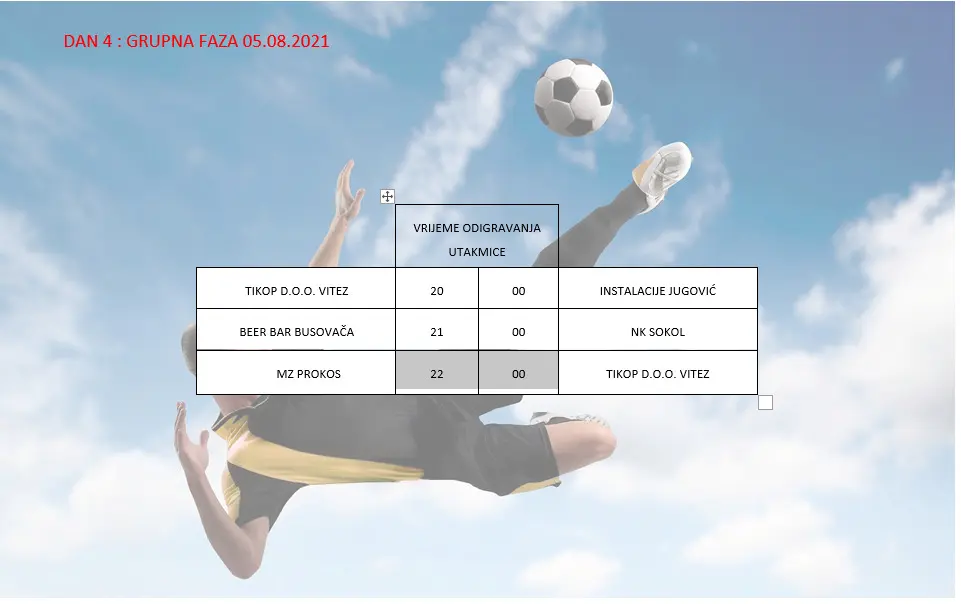 U 22:00 sata sastaju se ekipe MZ PRKOS i TIKOP D.O.O. VITEZ.
