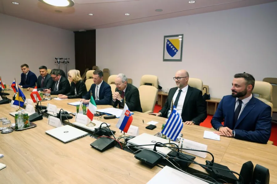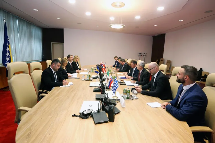 Veleposlanica Republike Austrije Ulrike Hartmann, veleposlanik Republike Italije Marco Di Ruzza, veleposlanik Republike Slovenije Damijan Sedar, veleposlanik Slovačke Republike Roman Hlobeň, zamjenik veleposlanika u Veleposlanstvu Češke Republike Štěpán Šantruček, zamjenik veleposlanika u Veleposlanstvu Republike Grčke Minas Ounanian i otpravnik poslova Veleposlanstva Republike Hrvatske Tomislav Lendić upoznali su predsjedatelja Čavaru sa sadržajem pisma kojim su ove države članice EU pružile snažnu potporu Bosni i Hercegovini za otvaranje pretpristupnih pregovora sa EU.