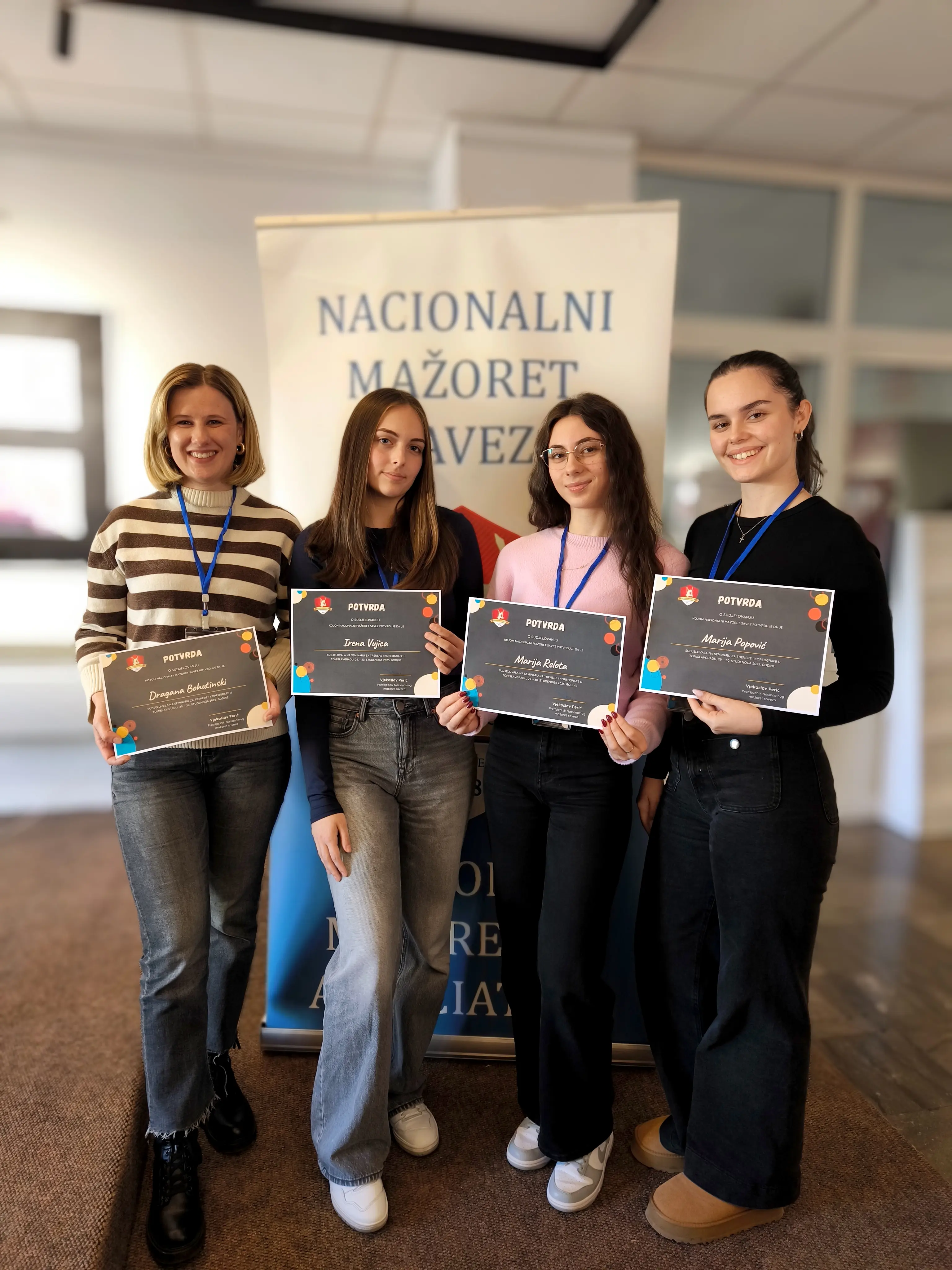 Mažoretkinje Busovača Marija Popović, Irena Vujica, Marija Relota i Dragana Bohutinski ovog su vikenda sudjelovale na stručnom Seminaru za trenere održanom u Tomislavgradu. Seminar je okupio voditelje i trenere iz različitih gradova s ciljem razmjene znanja, jačanja motivacije te unaprjeđenja rada s mlađim generacijama. Predavači su bili Ana Sabljić licencirani mažoret sudac, Stojan Sladoja prof. tjelesne i zdravstvene kulture, licencirani nogometni trener te Bjanka Bubić Šarić predsjednica i voditeljica Splitskih mažoretkinja.