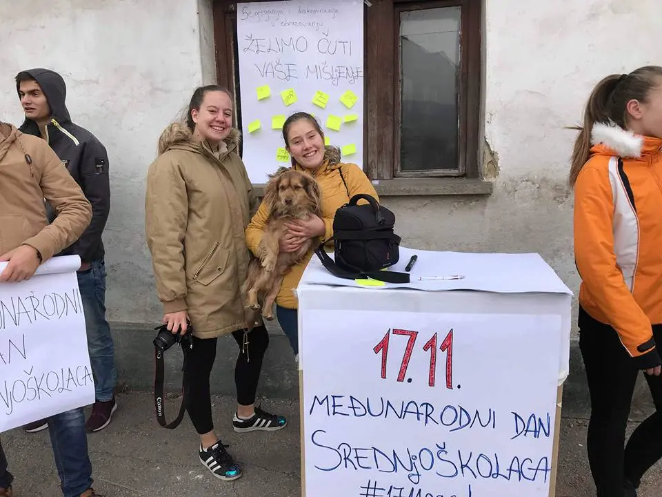 Postavili su štand gdje su svi mogli prići i napisati svoja mišljenja o ovom problemu kao i fenomenu “Dvije škole pod jednim krovom”. Podržani smo od velikog broja građana koji su taj dan napisali zaista fenomenalna mišljenja na date teme. Sretan nam dan srednjoškolaca.
