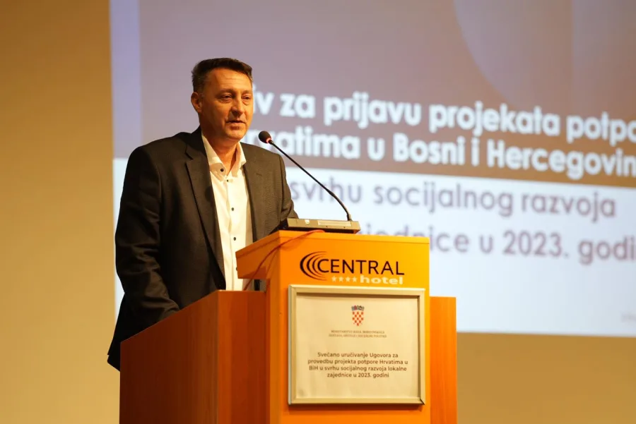 Ministar rada, mirovinskoga sustava, obitelji i socijalne politike Marin Piletić u sklopu radnog posjeta općini Vitez u Bosni i Hercegovini uručio je 25 ugovora vrijednih milijun eura za provedbu projekta potpore Hrvatima u Bosni i Hercegovini u svrhu socijalnog razvoja lokalne zajednice u 2023. godini.