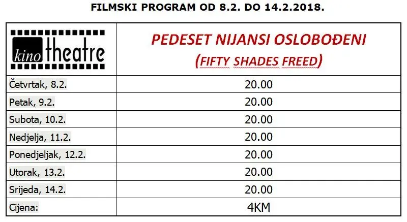 Film „Pedeset nijansi oslobođeni“ u kinu „Theatre“ možete pogledati od četvrtka 8.2. do 14.2.2018. godine, svaki dan s početkom u 20 sati.