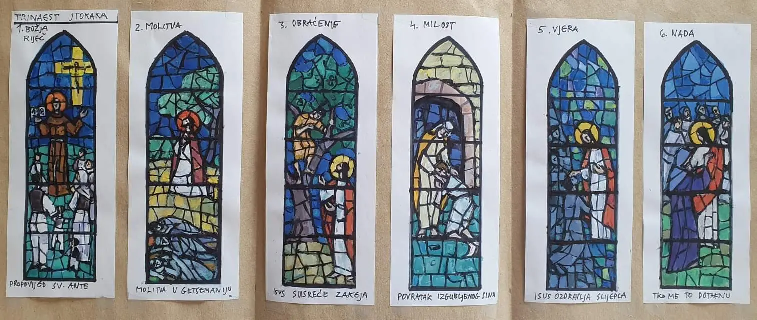 Preostalo je uraditi 13. vitraja i Vlatko je već dao idejno rješenje za ove vitraje. Tema je trinaest utoraka sv. Anti. To je jedinstvena tema i bit će unikat. Dobili smo i sva potrebna odobrenja od samostana, provincijalata, nadbiskupije, ministarstva kulture i zavoda za zaštitu spomenika, jer je crkva pod zaštitom države.