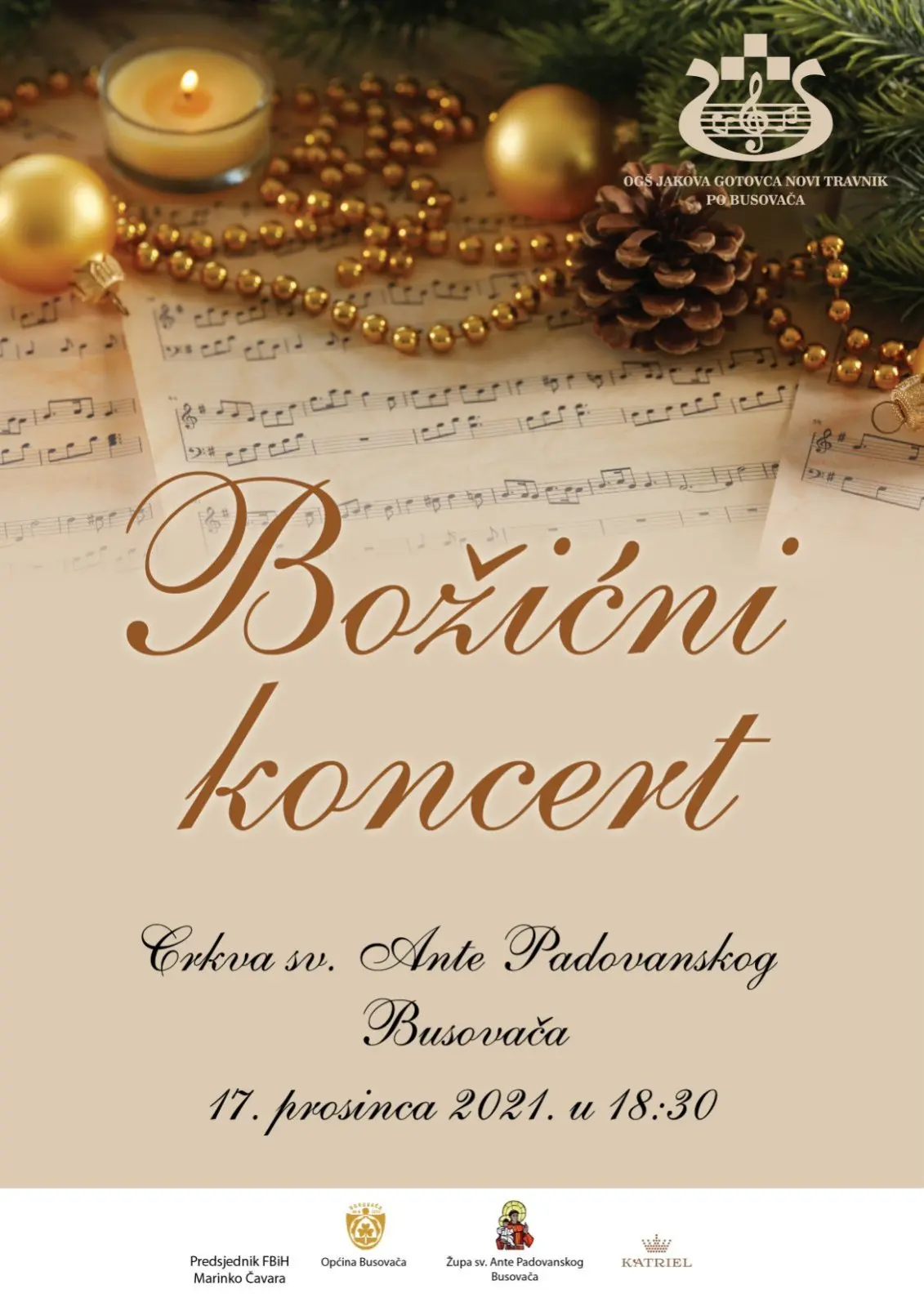 Koncert će se održati u petak, 17. prosinca u 18.30 sati, u crkvi sv. Ante Padovanskog u Busovači.