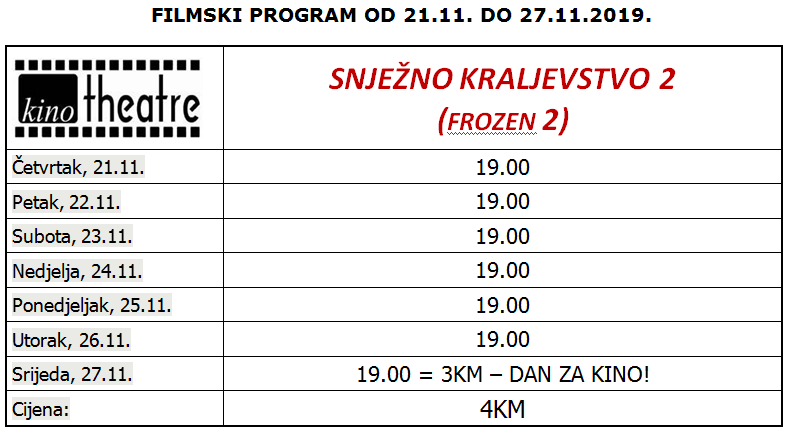 Sve informacije i rezervacije ulaznica u inbox Facebook page stranice kina Kino Theatre, na mail: kinotheare@gmail.com ili na broj 063/799-267 (Viber, SMS, poziv).