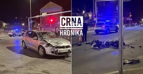 Na mjestu nesreće i dalje su vidljivi tragovi sudara – dijelovi motocikla i vozila rasuti su po cesti, a policija je obavila uviđaj kako bi utvrdila točan uzrok nesreće.