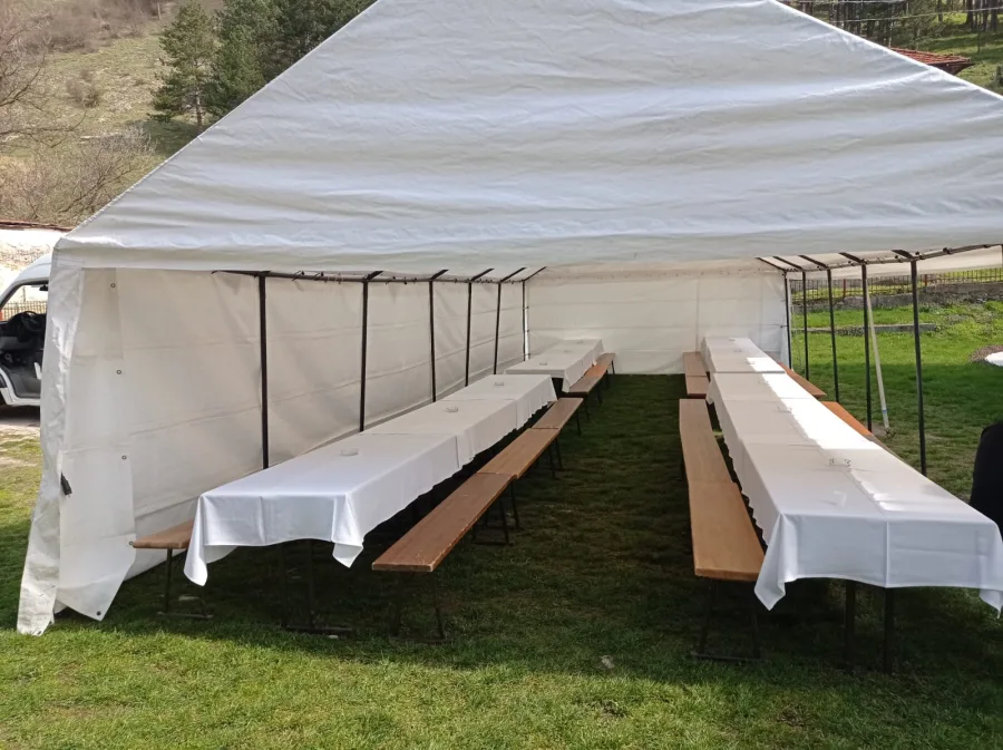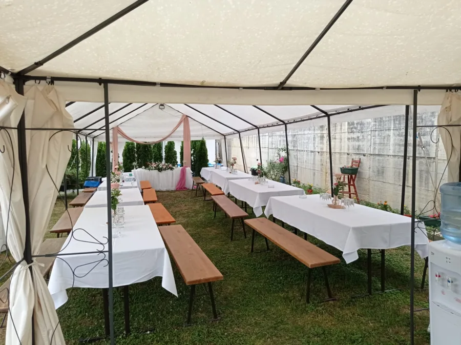 Dimenzije šatora koje su dostupne su 8×4 metra i 5,5×12 metara, prilagođene različitim potrebama i broju gostiju. No to nije sve – uz iznajmljivanje šatora, nudimo i dodatnu opremu koja će vašu proslavu ili događaj učiniti nezaboravnim iskustvom. Naša ponuda uključuje stolove, klupe, posuđe, pribor za jelo, stolnjake, frižidere, suncobrane i čak barske stolove. U ponudi su i podovi za šatore, što je dodatna kvalitetna pogodnost. Sve što vam je potrebno kako biste organizirali savršen događaj – mi vam pružamo.
