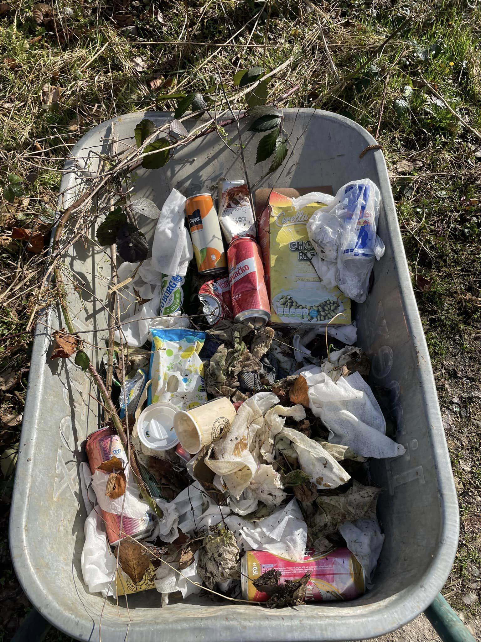 Kome? Prvenstveno prirodi, prolaznicima, a na kraju meni prolazniku i najblizem stanovniku do trafoa. Tako svake godine pozivam sebe na odgovornosti i svoje limex taćke da ovo pokupimo i damo kaćunima prirodu kakvu zaslužuju. Naime (ne)svjesni mladi par frljacanjem maramica i limenki oko sebe smatraju da će to priroda progutati i da će nestati. Malo su se prevarili.