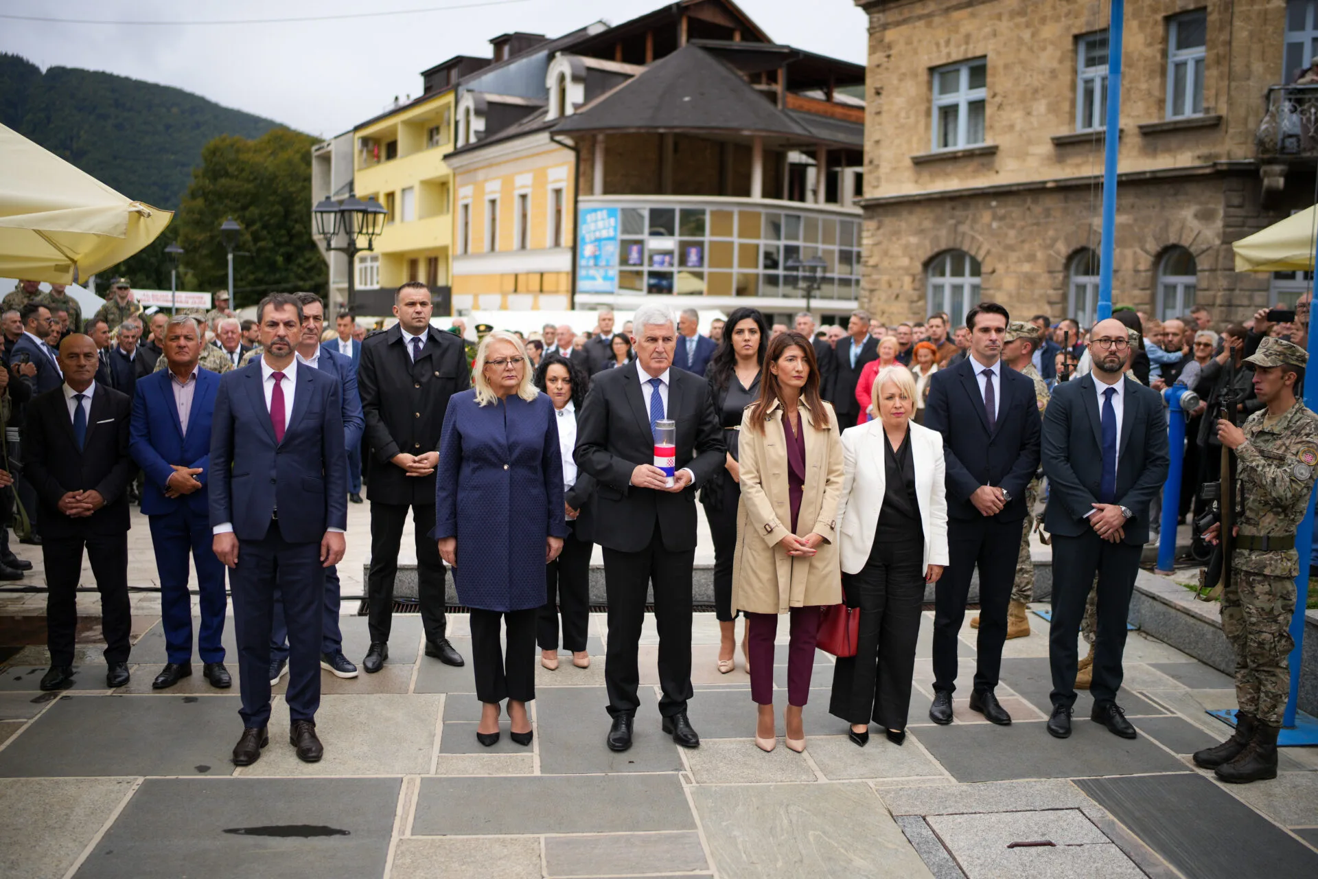 Nakon mise, položeni su vijenci i zapaljene svijeće na središnjem spomen-obilježju poginulim braniteljima, gdje je predsjednik Čović, zajedno s izaslanstvom HNS-a BiH, odao počast herojima koji su svoje živote dali za slobodu hrvatskog naroda. „Razvijanje hrvatskog stijega na jajačkoj tvrđavi dodatno je istaknulo važnost njihove žrtve i hrabrosti“- naglašeno je tijekom svečanosti.