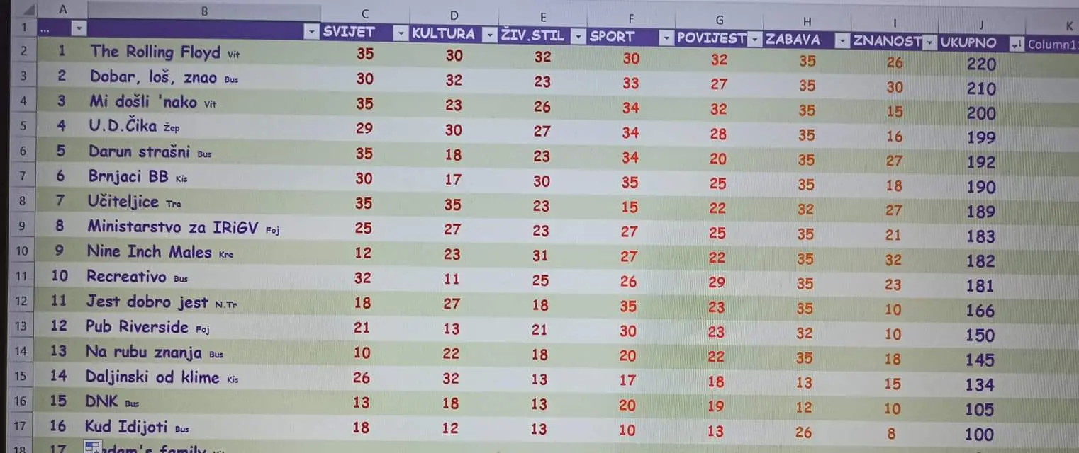 “Po tko zna koji put hvala svim ekipama na dolasku, gazdi Boji, Žuji, Uzoru. Iduće druženje zakazujemo u idući utorak. Vidimo se!”, poručuje Vedran Bagarić, organizator kviza.