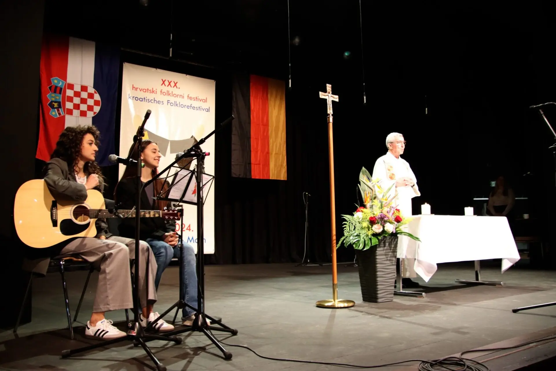 Ovogodišnji Dječji folklorni festival, okupio je preko petsto sudionika iz trinaest hrvatskih katoličkih misija i zajednica. Festival je započeo službom riječi koju je predslavio vlč. Ivica Komadina, delegat Dušobrižništva za Hrvate u Njemačkoj. Nakon intoniranja hrvatske himne koju su otpjevale sestre Magdalena i Gabrijela Radoš, vlč. Ivica je službeno otvorio Festival izrazivši radost što hrvatske katoličke misije i zajednice u Njemačkoj uz duhovnu skrb za hrvatske vjernike, njeguju i podržavaju očuvanju hrvatske kulturne tradicije, pritom posebno zahvalivši voditeljima folklornih skupina te djeci koja su se pripremala za sudjelovanje na folklornom festivalu.
