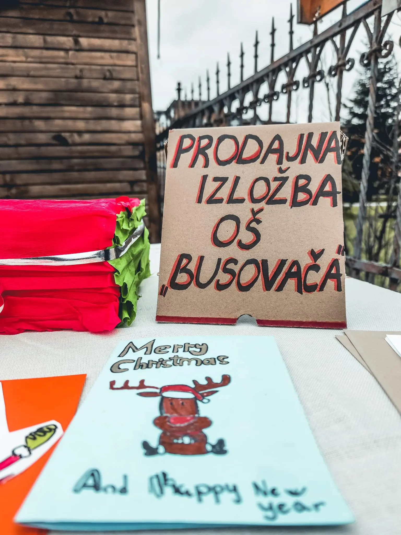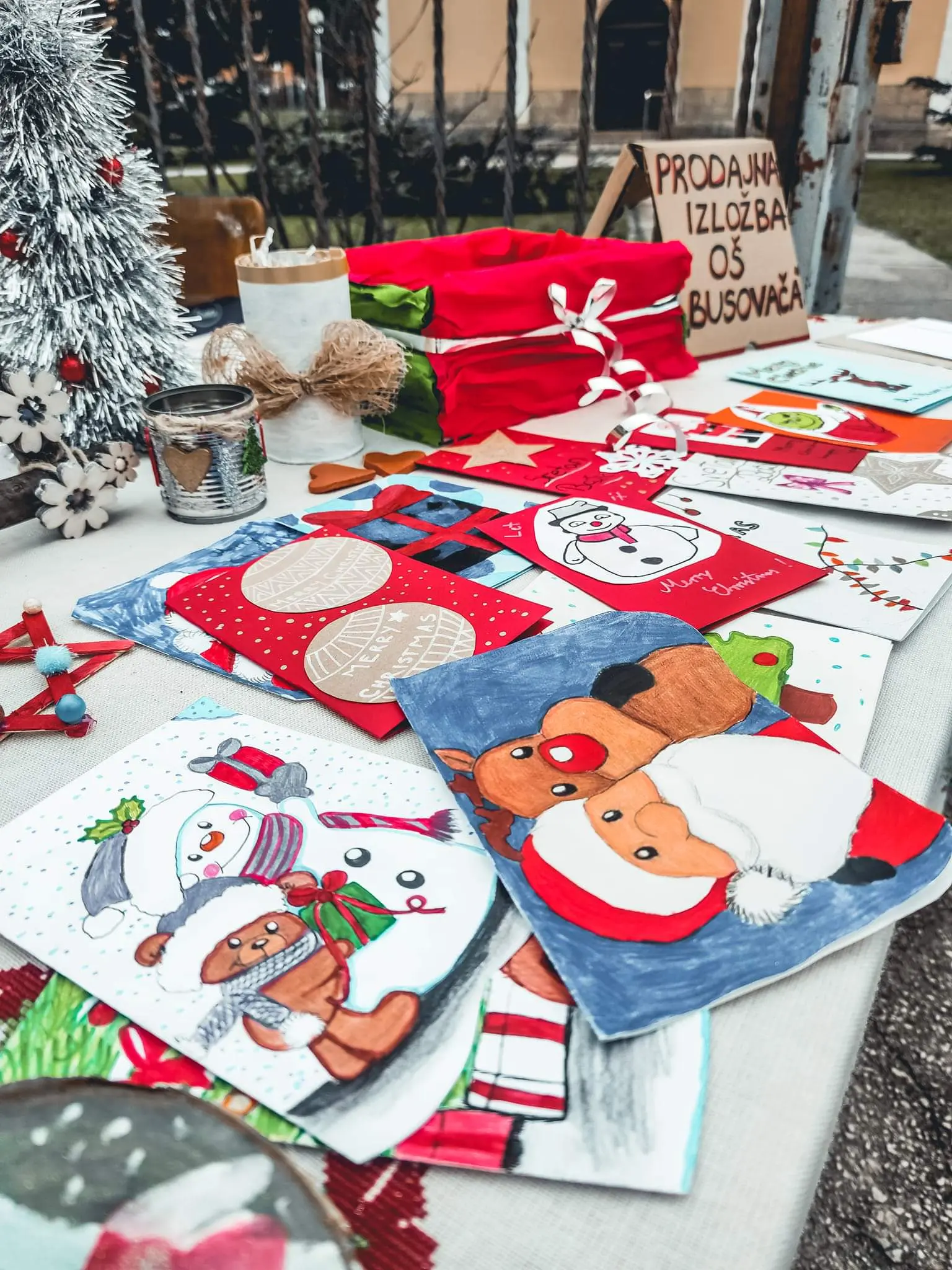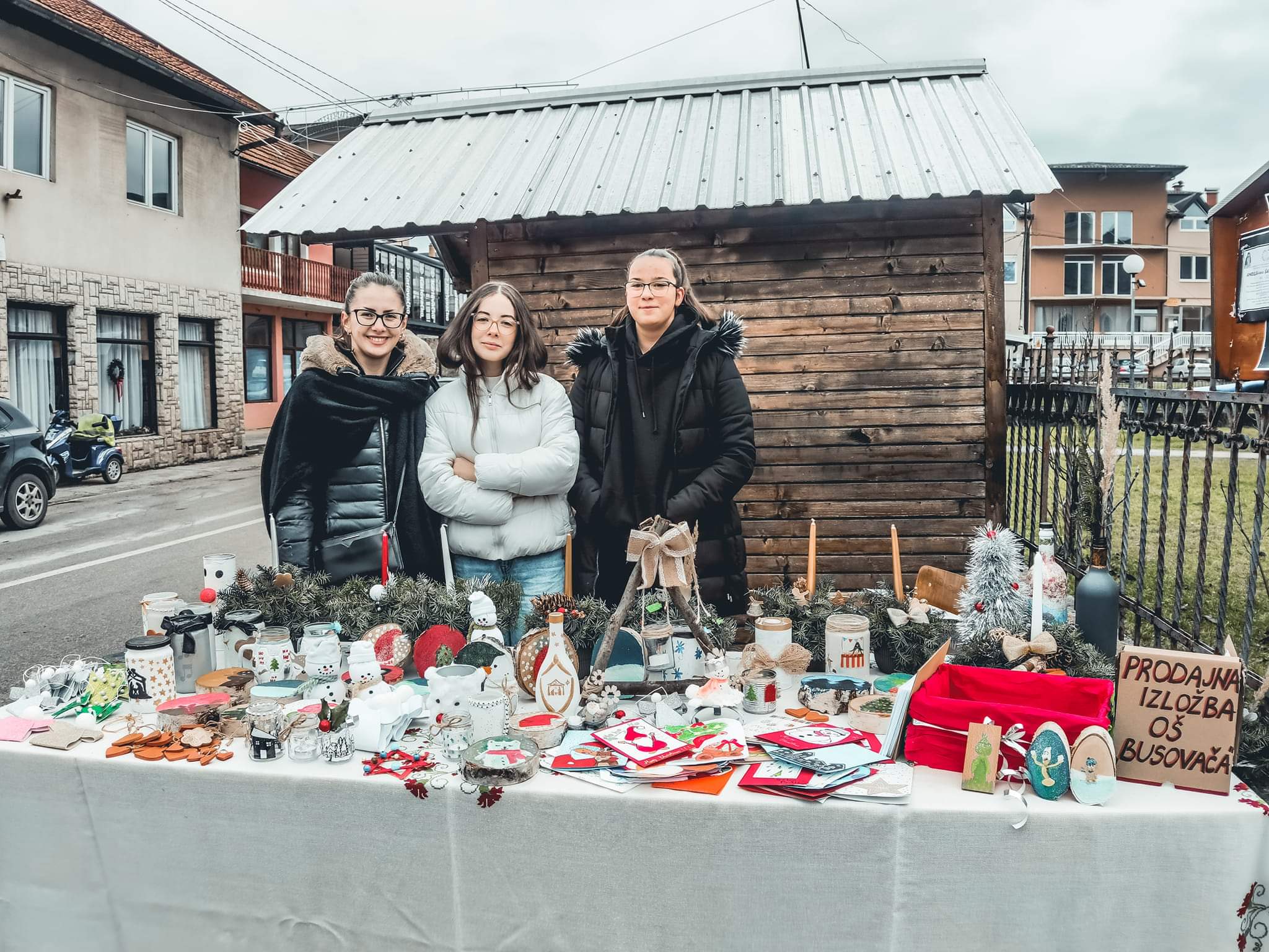 Uz podršku razrednika devetih razreda Osnovne škole “Busovača”, nastavnice Marijane B. i nastavnika Dragana Ć. te nastavnice likovnog Kristine L. učenici su izradili različite ukrase s božićnim motivima. Osim toga kolači su se najbolje prodavali, a popio se i topli čaj.