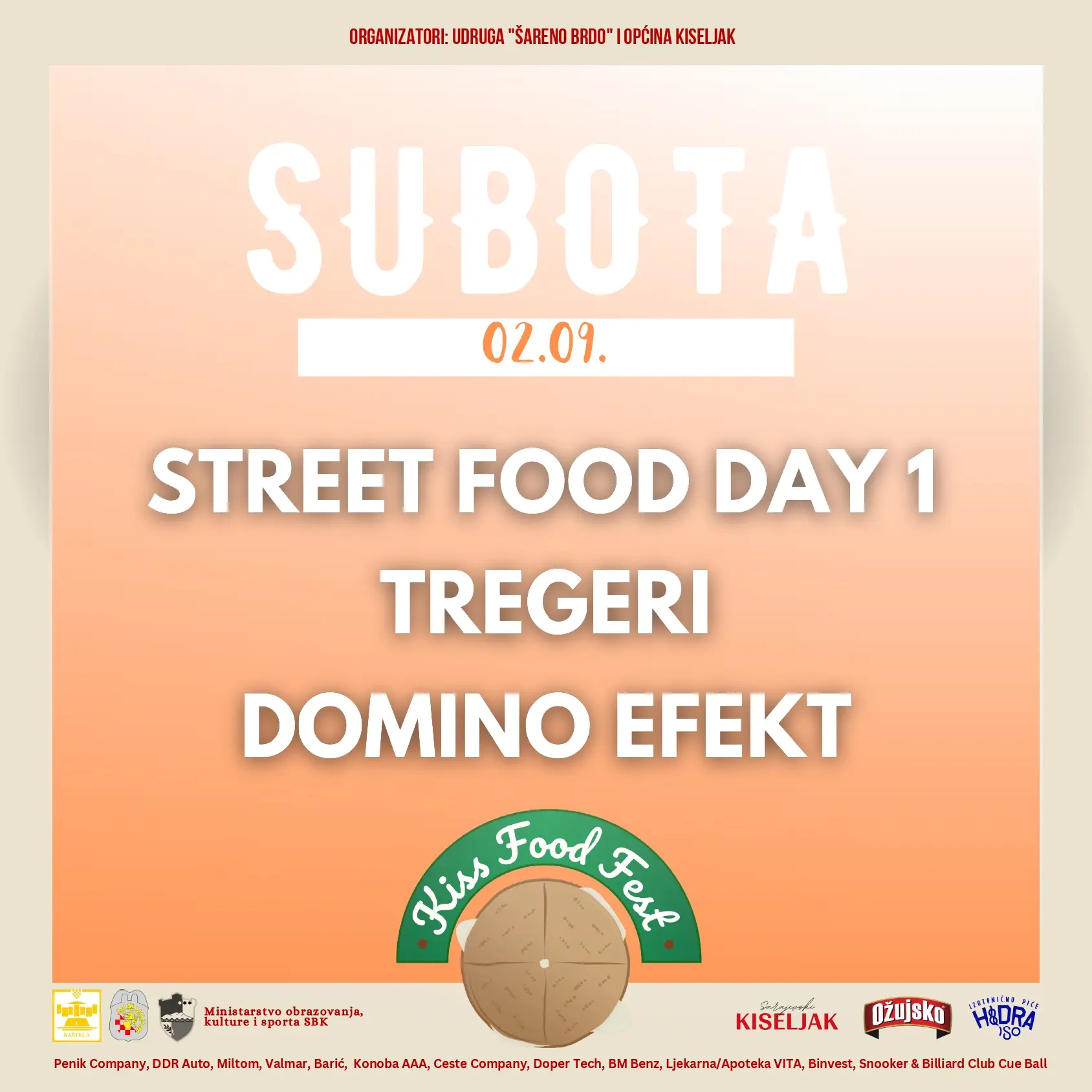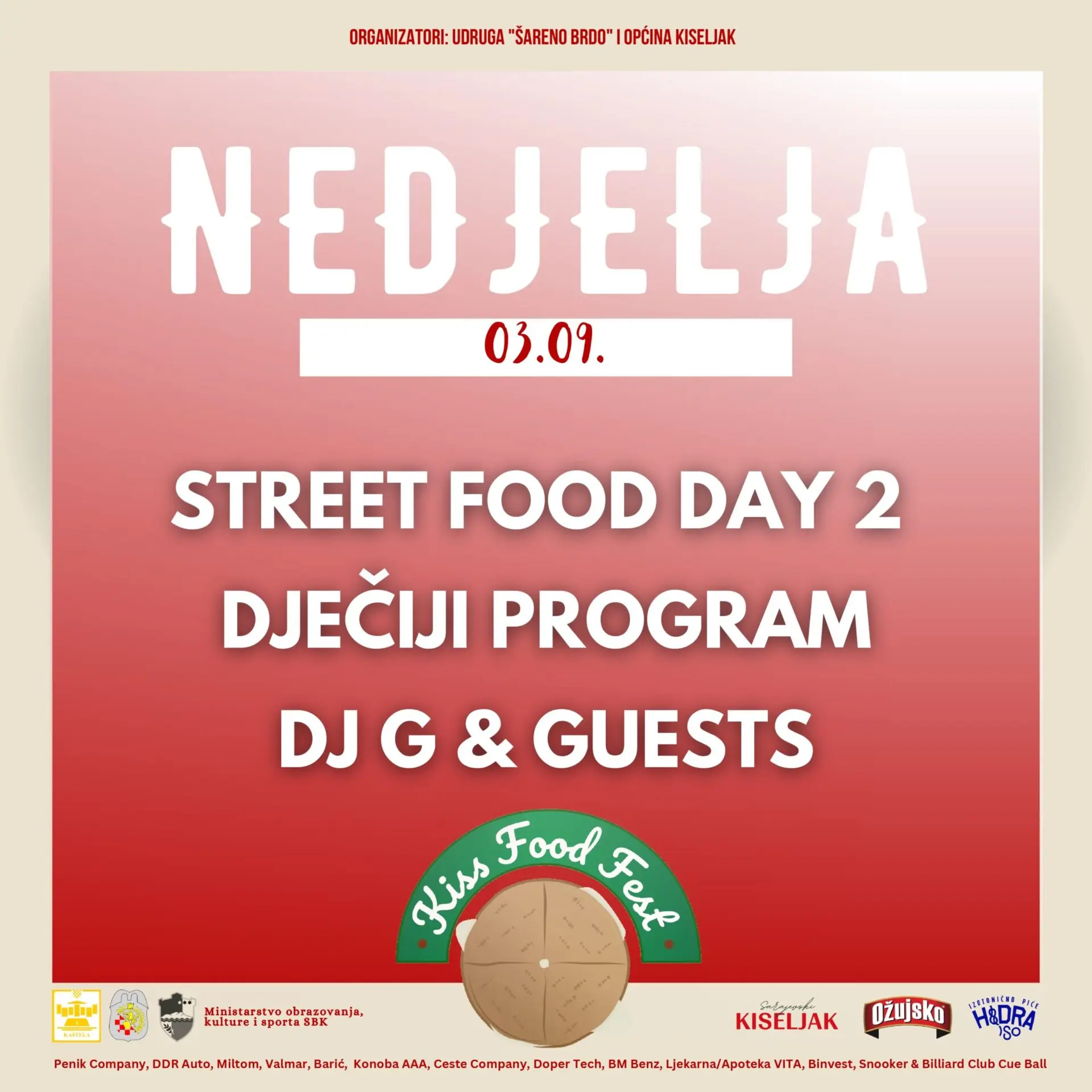 Trodnevni gastro – program pratit će i brojne glazbene izvedbe, uključujuči i sastav Zlatne žice, DJ G i DJ Soul te bendovi Domino Efekt i Tregeri. Prvi dan festivala posvećen je promidžbi široko poznate kiseljačke pogačice, jela specifičnog za ovu lokalnu zajednicu po kojem je Kiseljak poznat. Opjevanu pogačicu u kolovozu 2022. godine Općina Kiseljak, u suradnji sa Federalnim ministarstvom kulture i sporta, kandidirala je za UNESCO popis zaštićene nematerijalne baštine. Posjetitelji će prvi dan imati priliku kušati ovo jelo besplatno, uz široku ponudu i drugih jela street food karaktera.