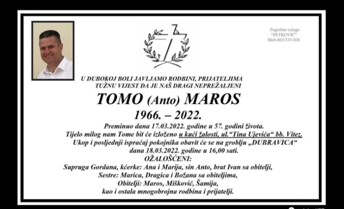 Obitelji i prijateljima pokojnog Tome, grad-busovaca.com portal izražava najiskreniju kršćansku sućut.