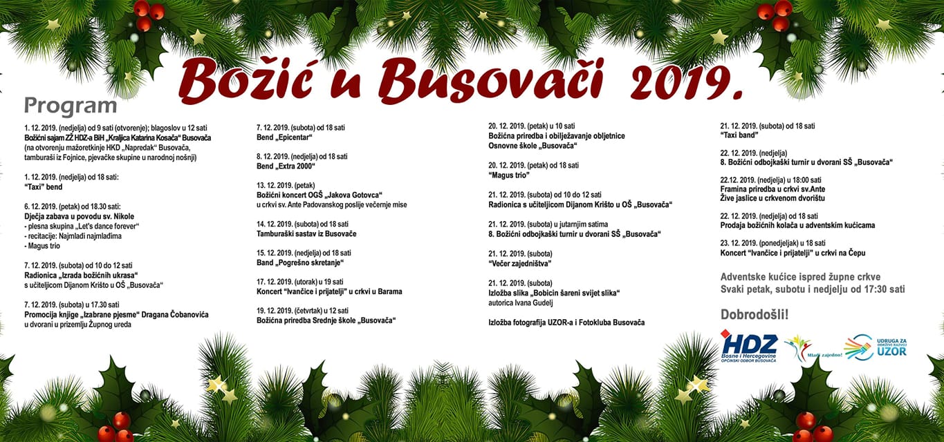 Tamburaši, vokalne skupine, mažoretkinje, bendovi, mladi talenti, promocija knjige, izložba slika, predstave, sportska natjecanja…sve vas to očekuje za vrijeme „Božića u Busovači“.