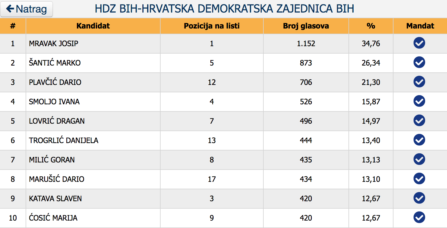 Pogledajte pregled osvojenih mandata po strankama i imena vijećnika koja će činiti novi sastav Općinskog vijeća Busovača.