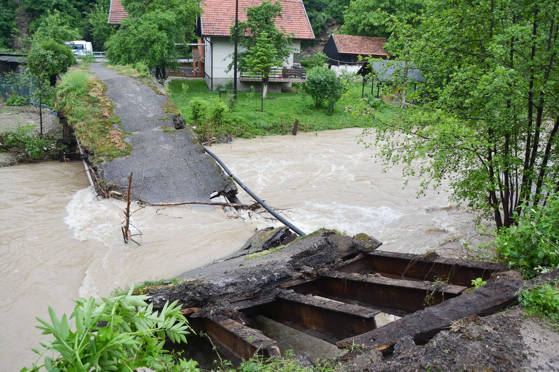 Most na rijeci Lašvi, u mjestu Kaonik, kod kuće Vujica, sinoć oko 19:35 sati otišao je u povijest. Obilna kiša koja je jučer tijekom cijelog dana padala srušila je ovaj most koji je u Busovači bio jedina veza lijeve i desne strane Lašve. Sreća je, ako se tako može reći, što je most srušen jučer na kraju dana jer ovaj most koriste naši najmlađi prilikom odlaska u Osnovnu školu “Kaonik”… Pogledajte fotografije i video: