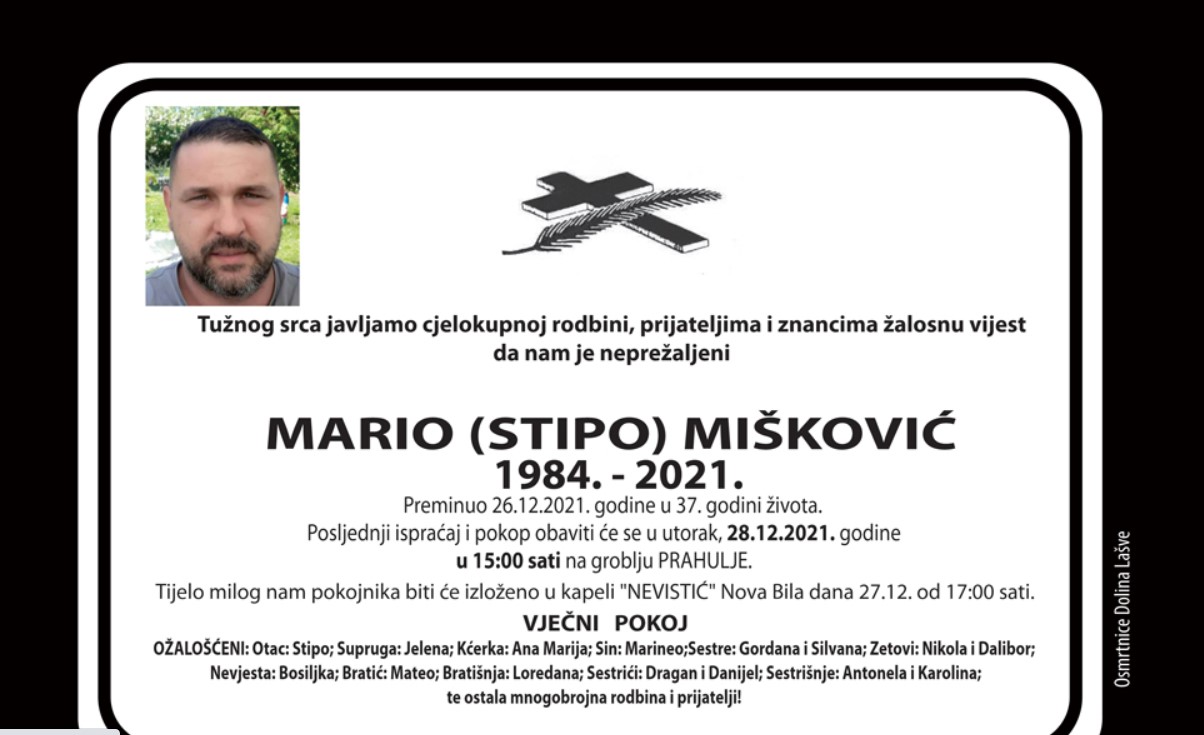 Sutra sahrana tragično preminulog Marija Miškovića