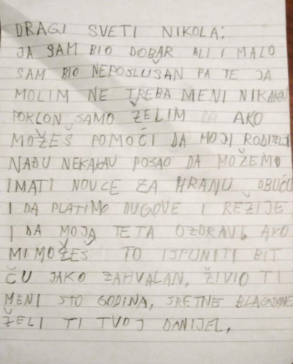 Da su djeca najiskrenija bića pokazuje i ovo dječije pismo upućeno svetom Nikoli.
