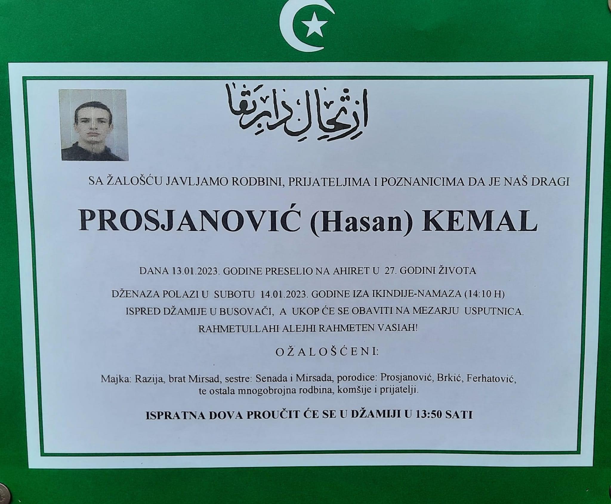 U 27. godini života u Busovači je preminuo Kemal Prosjanović.