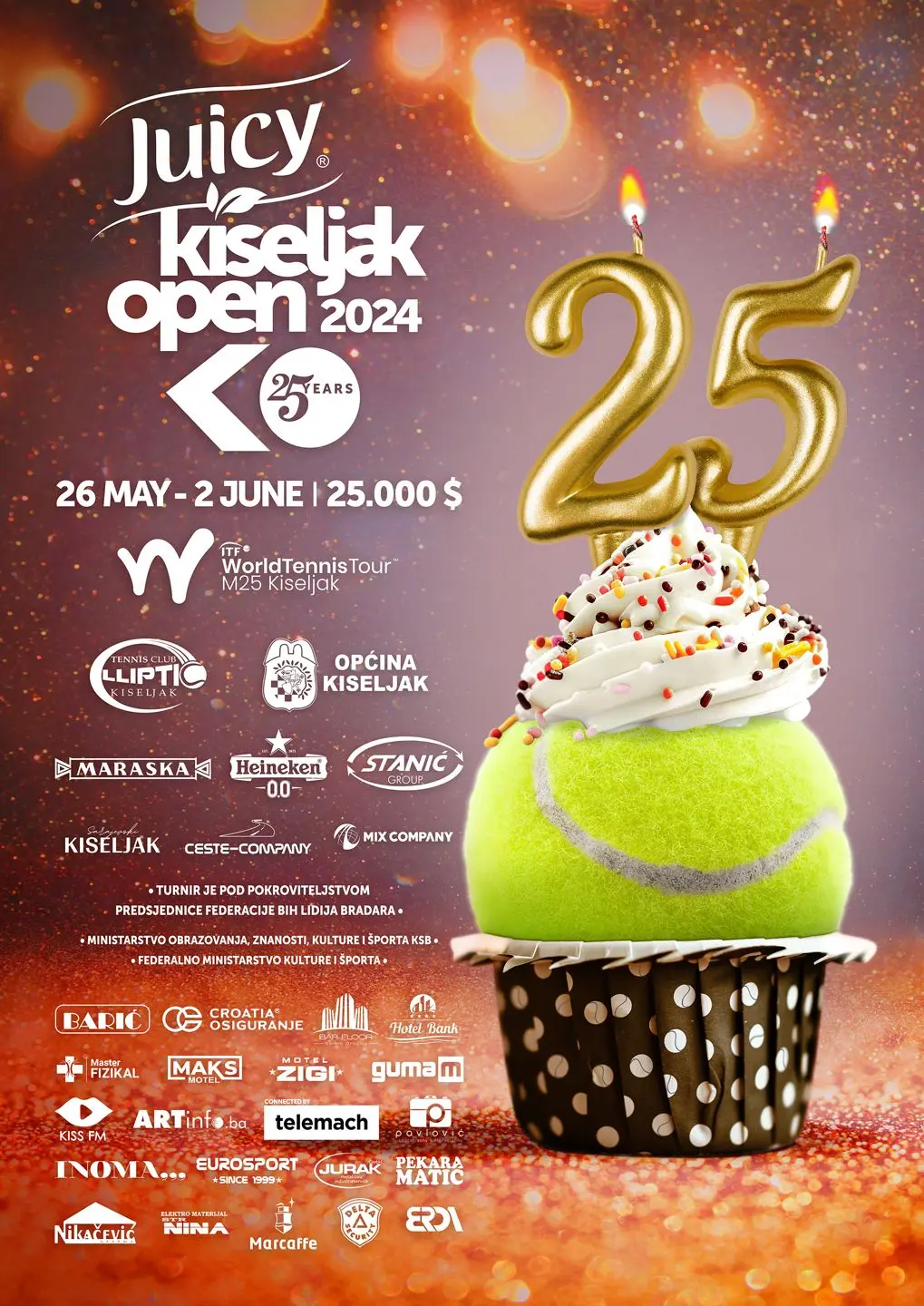 Kiseljak i ove godine ima jedan od triju najjačih teniskih turnira u BiH. U pitanju je 25. jubilarno izdanje Kiseljak Opena, služenog naziva Juicy Kiseljak Open 2024.