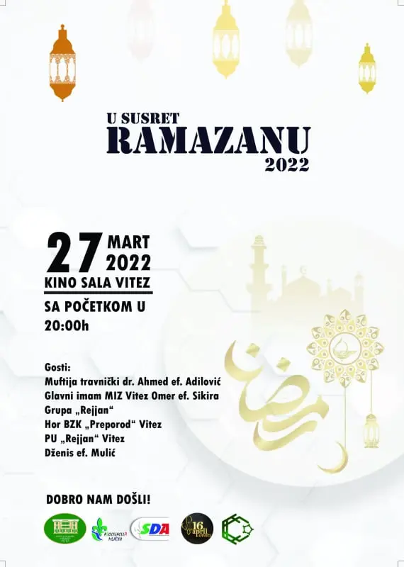Manifestacija „U susret Ramazanu“ održat će se u nedjelju, 27.ožujka. 2022. godine od 20 sati u kino sali u Vitezu.