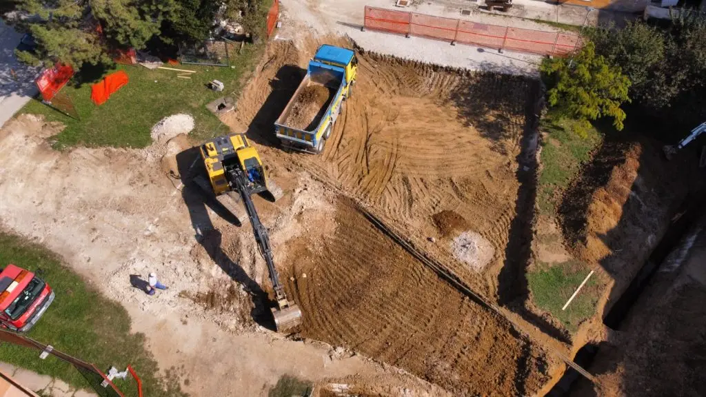 U centru Novog Travnika, odmah ispod zgrade općine u tijeku su zemljani radovi na izgradnji zgrade Zavoda za zdravstveno osiguranje SBK,a radove izvodi firma Vlašić gradnja.