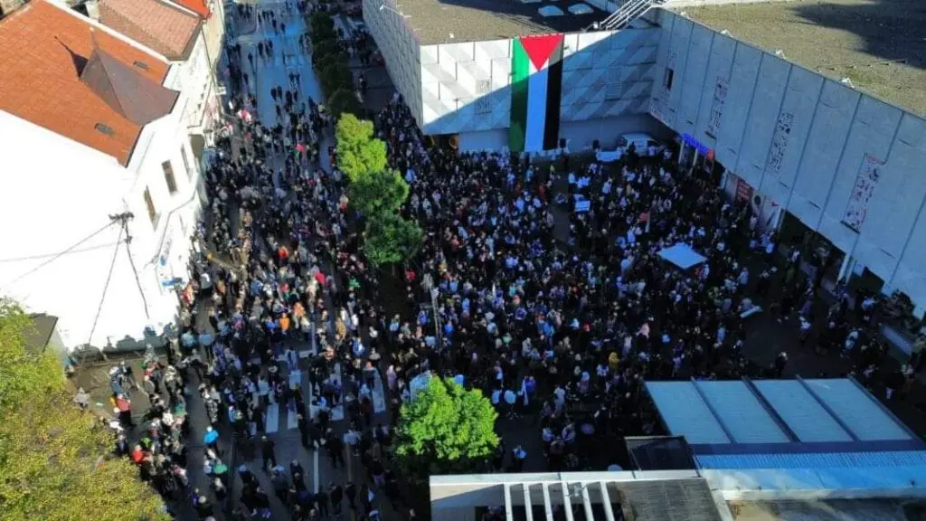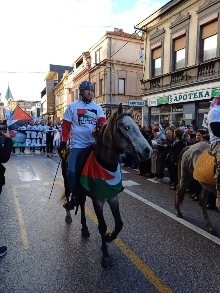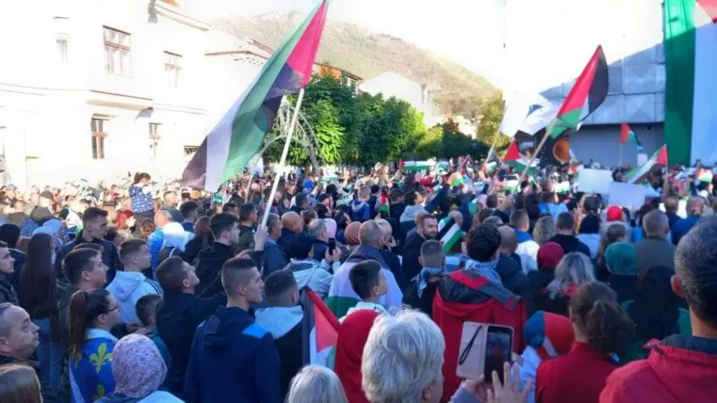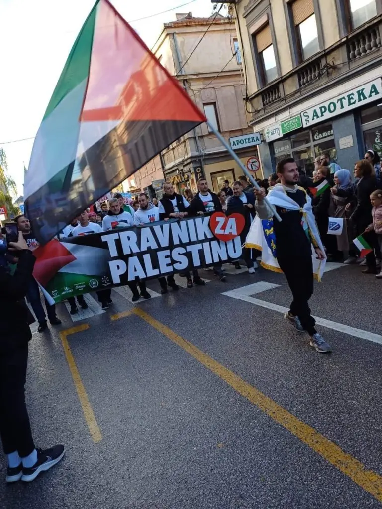 Veliki broj građana Travnika danas je noseći zastave Palestine i antiratne parole poslao poruku podrške narodu u Gazi.