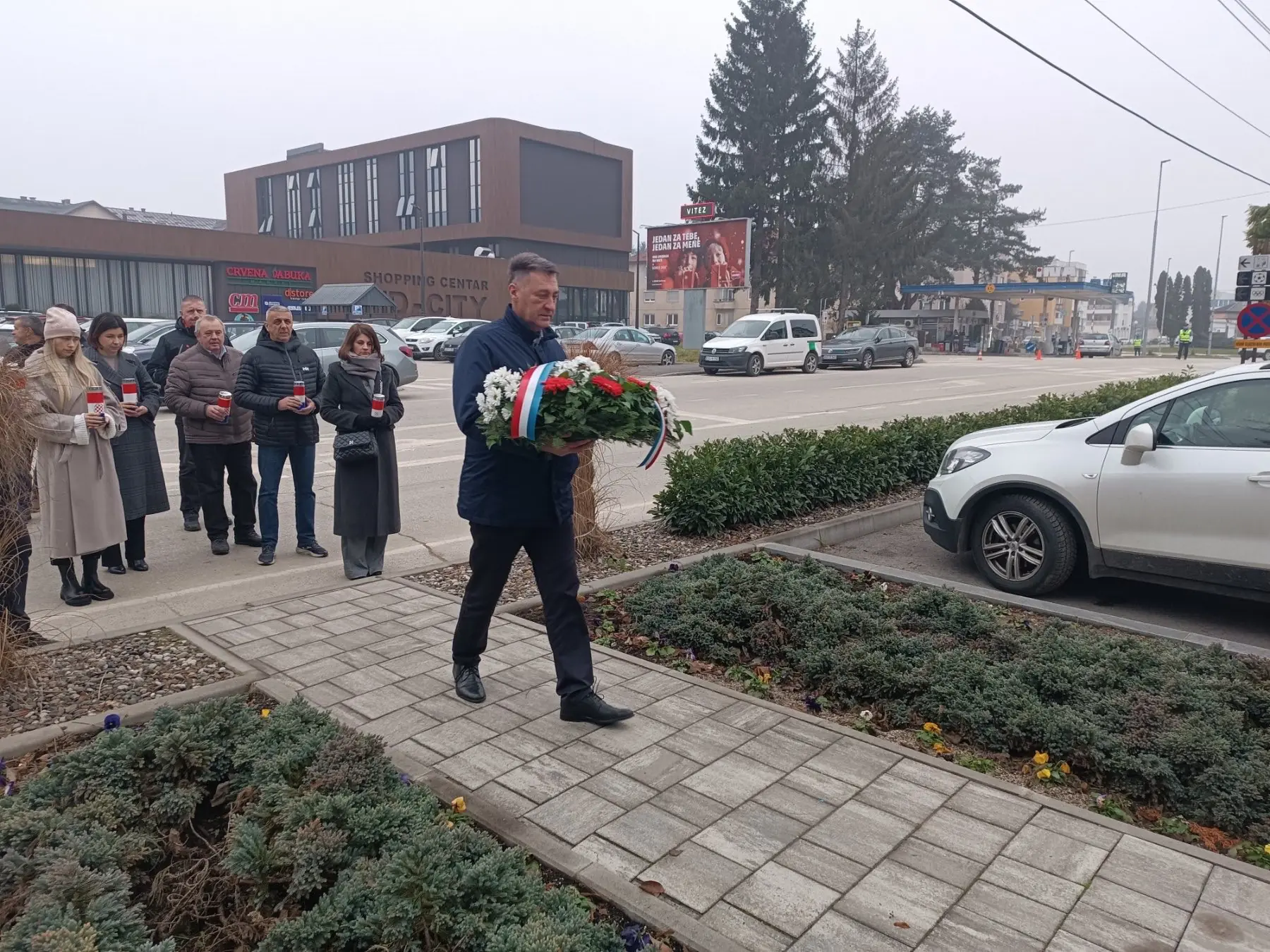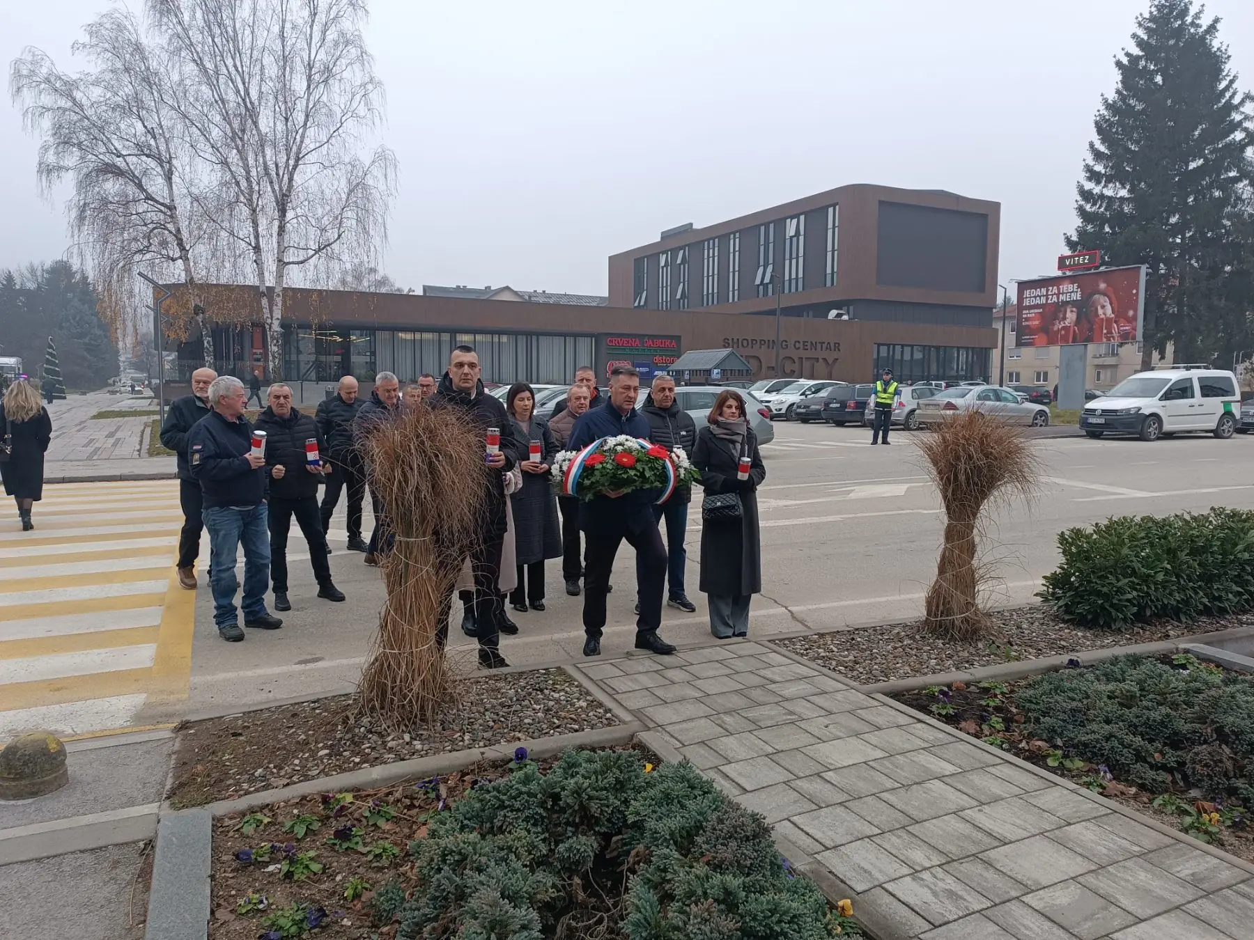 Ispred općinske zgrade upaljene svijeće i položeni vijenci u organizaciji HDZ BiH Vitez.